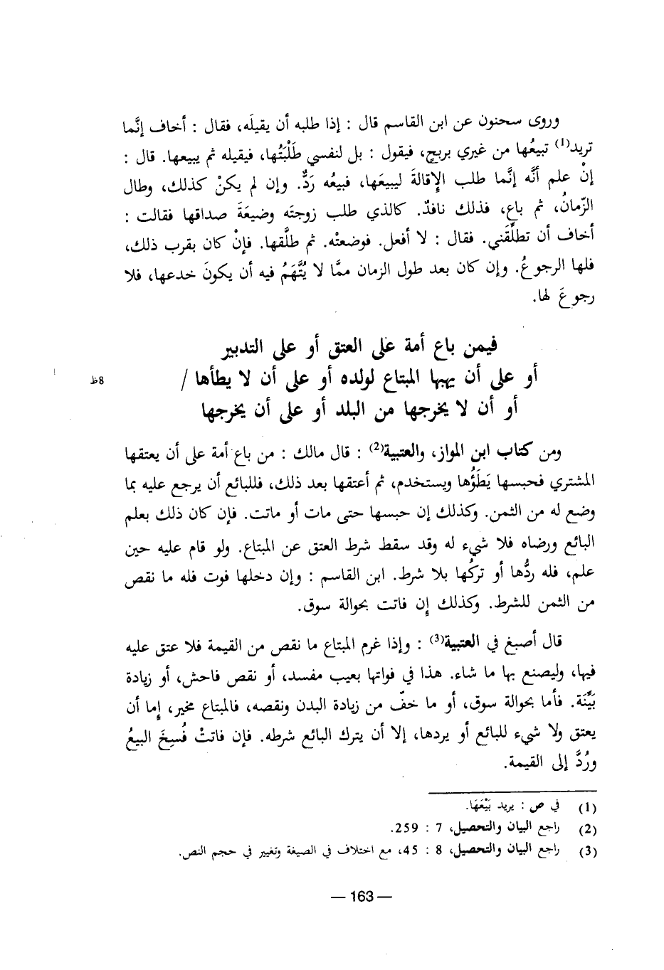 أو على أن يهبها المبتاع لولده أو على أن لا يطأها