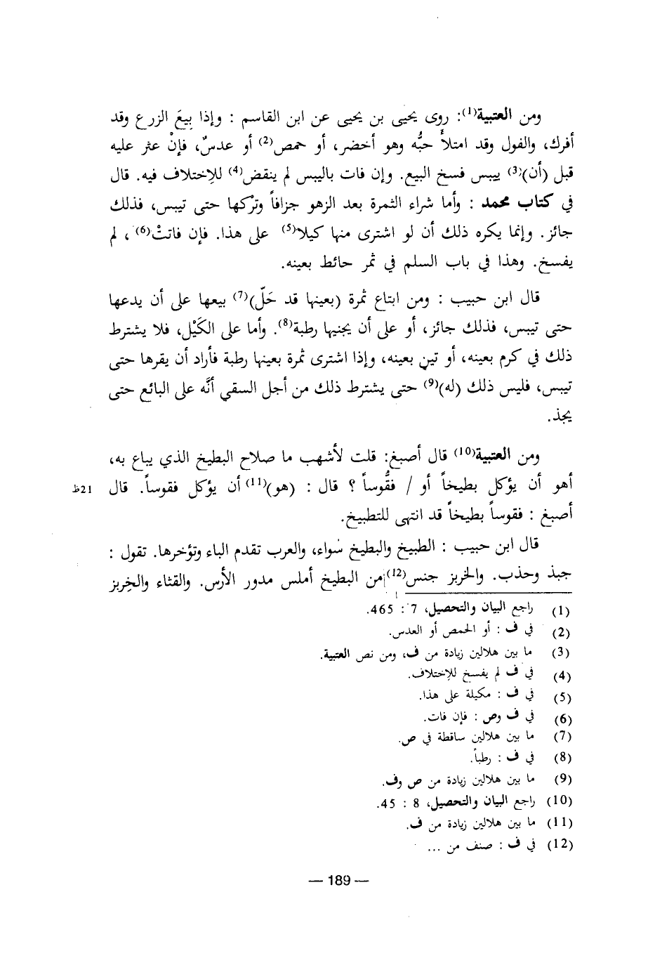ومن العتبية: قال أصبغ: قلت لأشهب ما صلاح البطيخ الذي يباع به، أهو أن يؤكل بطيخًا أو فقوسًا؟ قال: هو أن يؤكل فقوسًا. قال أصبغ: فقوسًا بطيخًا قد انتهى للتطبيخ.