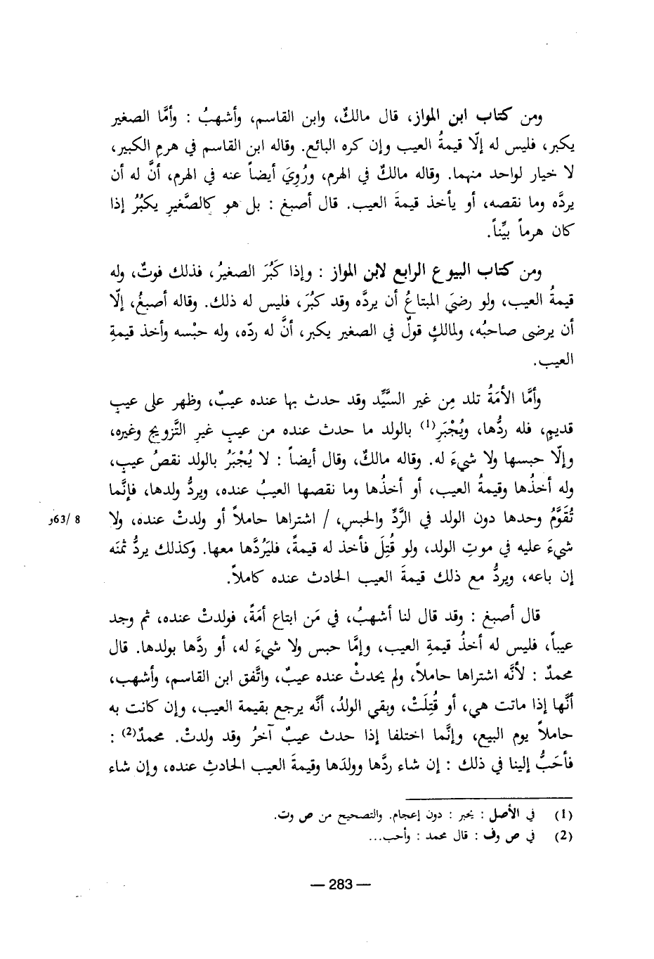 ومن كتاب البيوع الرابع لابن المواز: وإذا كبر الصغير، فذلك فوت، وله قيمة العيب، ولو رضي المبتاع أن يرده وقد كبر، فليس له ذلك. وقاله أصبغ، إلا أن يرضى صاحبه، ولمالك قول في الصغير يكبر، أن له رده، وله حبسه وأخذ قيمة العيب.