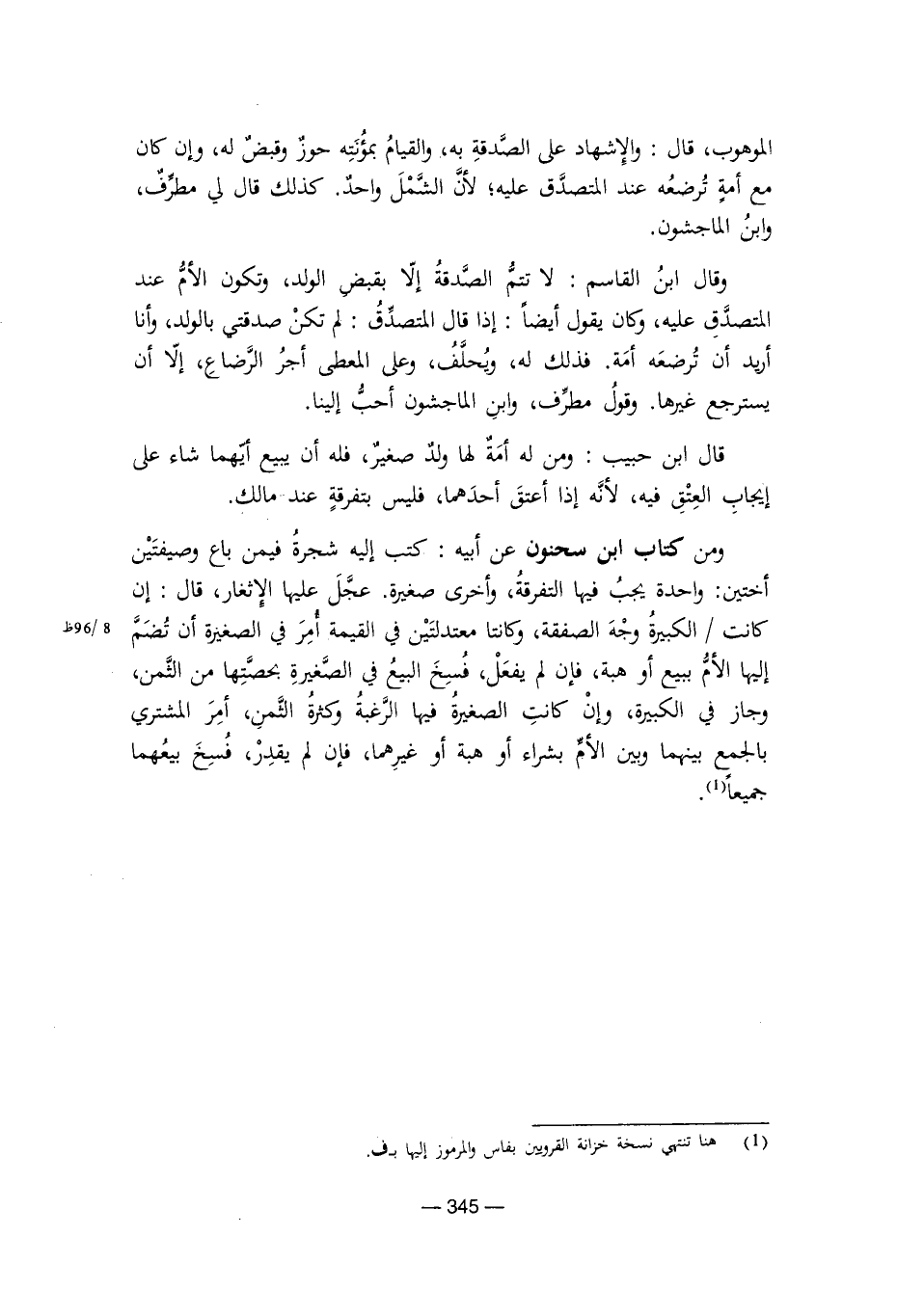 وقال ابن القاسم: لا تتم الصدقة إلا بقبض الولد، وتكون الأم عند المتصدق عليه، وكان يقول أيضًا: إذا قال المتصدق: لم تكن صدقتي بالولد، وأنا أريد أن ترضعه أمة. فذلك له، ويحلف، وعلى المعطى أجر الرضاع، إلا أن يسترجع غيرها. وقول مطرف، وابن الماجشون أحب إلينا.
