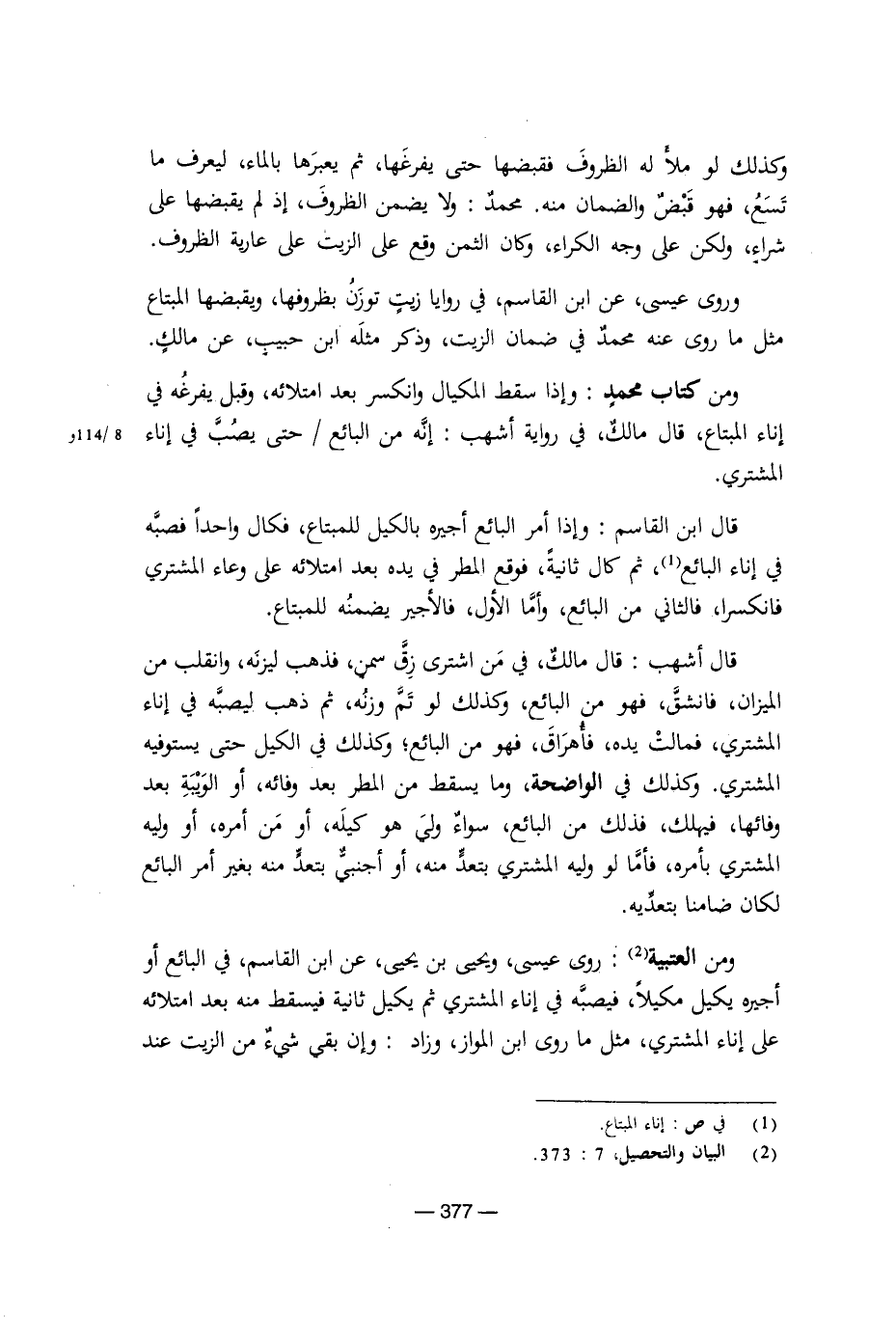 وروى عيسى، عن ابن القاسم في روايا زيت توزن بظروفها، ويقبضها المبتاع مثل ما روى عنه محمد في ضمان الزيت، وذكر مثله ابن حبيب، عن مالك.