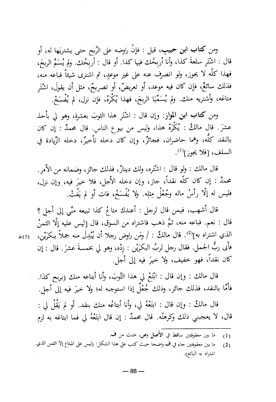 قال أشهب فيمن قال لرجل: أعندك متاع كذا تبيعه مني إلى أجل؟ قال: نعم. فباعه منه، ثم ذهب فاشتراه من السوق، قال: ليس عليه إلا الثمن الذي اشتراه به. قال مالك: ومن راوض رجلاً أن يبدل منه جملاً ببكرين، فأبى رب الجمل، فقال رجل لرب البكرين: زده، وهو لي بخمسة عشر. قال: إن كان نقدًا، فهو خفيف، ولا خير فيه إلى أجل.