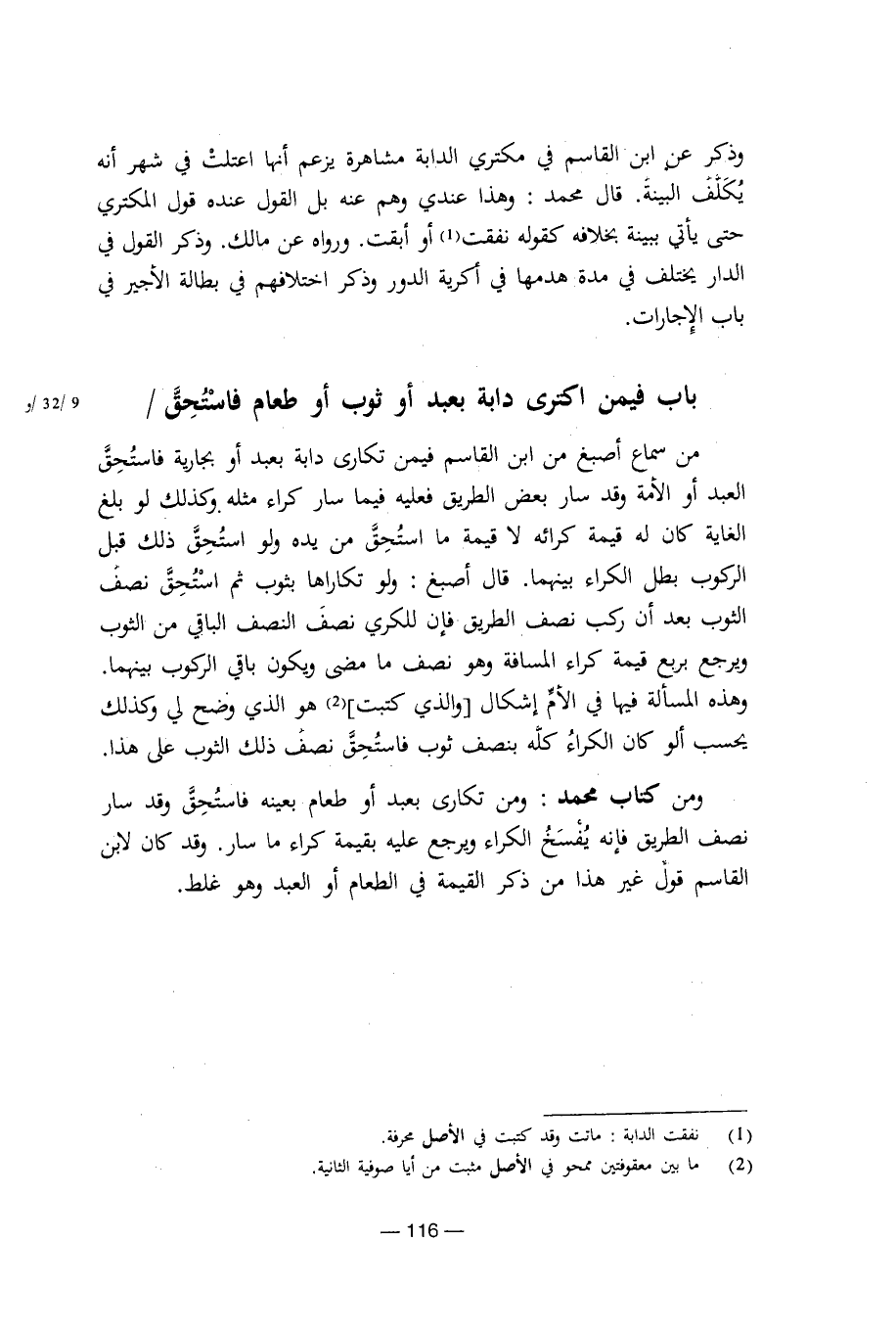 وذكر عن ابن القاسم في مكتري الدابة مشاهرة يزعم أنها اعتلت في شهر أنه يكلف البينة، قال محمد: وهذا عندي وهم عنه بل القول عنده قول المكتري حتى يأتي ببينة بخلافه كقوله نفقت أو أبقت. ورواه عن مالك. وذكر القول في الدار يختلف في مدة هدمها في أكرية الدور وذكر اختلافهم في بطالة الأجير في باب الإجارات.