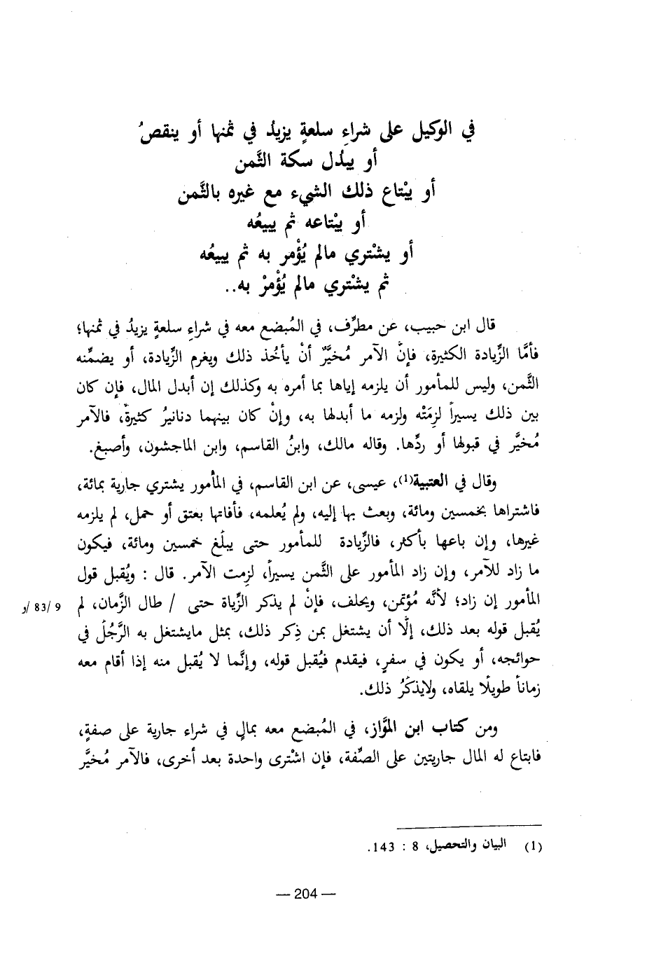 في الوكيل على شراء سلعة يزيد في ثمنها أو ينقص