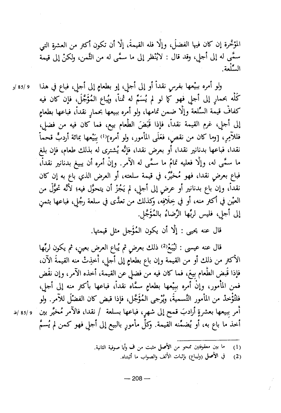 قال عنه يحيى: إلا أن يكون المؤجل مثل قيمتها.