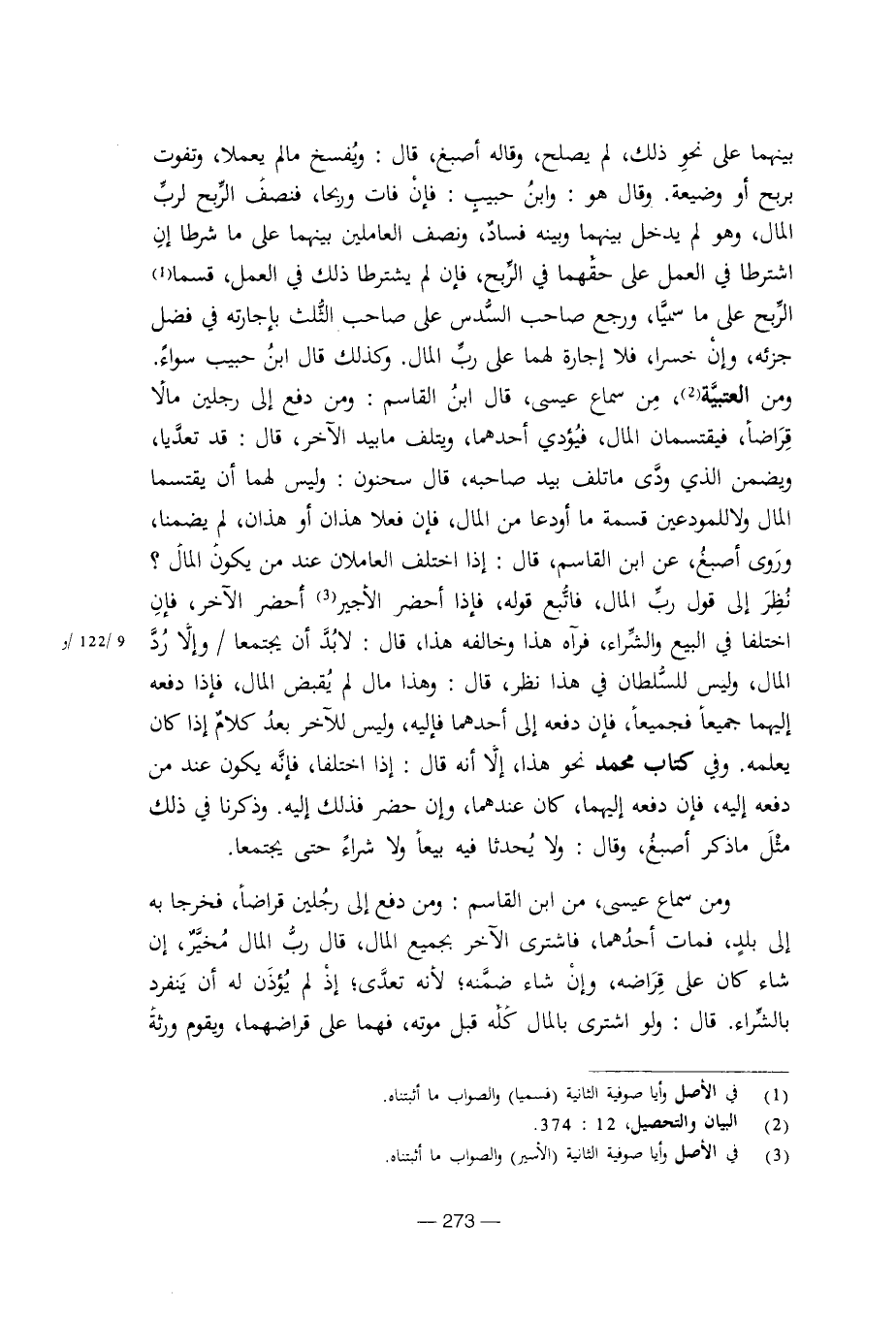 بينهما على نحو ذلك، لم يصلح، وقاله أصبغ، قال: ويفسخ ما لم يعملا، وتفوت بربح أو وضيعة. وقال هو: وابن حبيب: فإن فات وربحا، فنصف الربح لرب المال، وهو لم يدخل بينهما وبينه فساد، ونصف العاملين بينهما على ما شرطا إن اشترطا في العمل على حقهما في الربح، فإن لم يشترطا ذلك في العمل، قسما الربح على ما سميا، ورجع صاحب السدس على صاحب الثلث بإجارته في فضل جزئه، وإن خسرا، فلا إجارة لهما على رب المال. وكذلك قال ابن حبيب سواء.