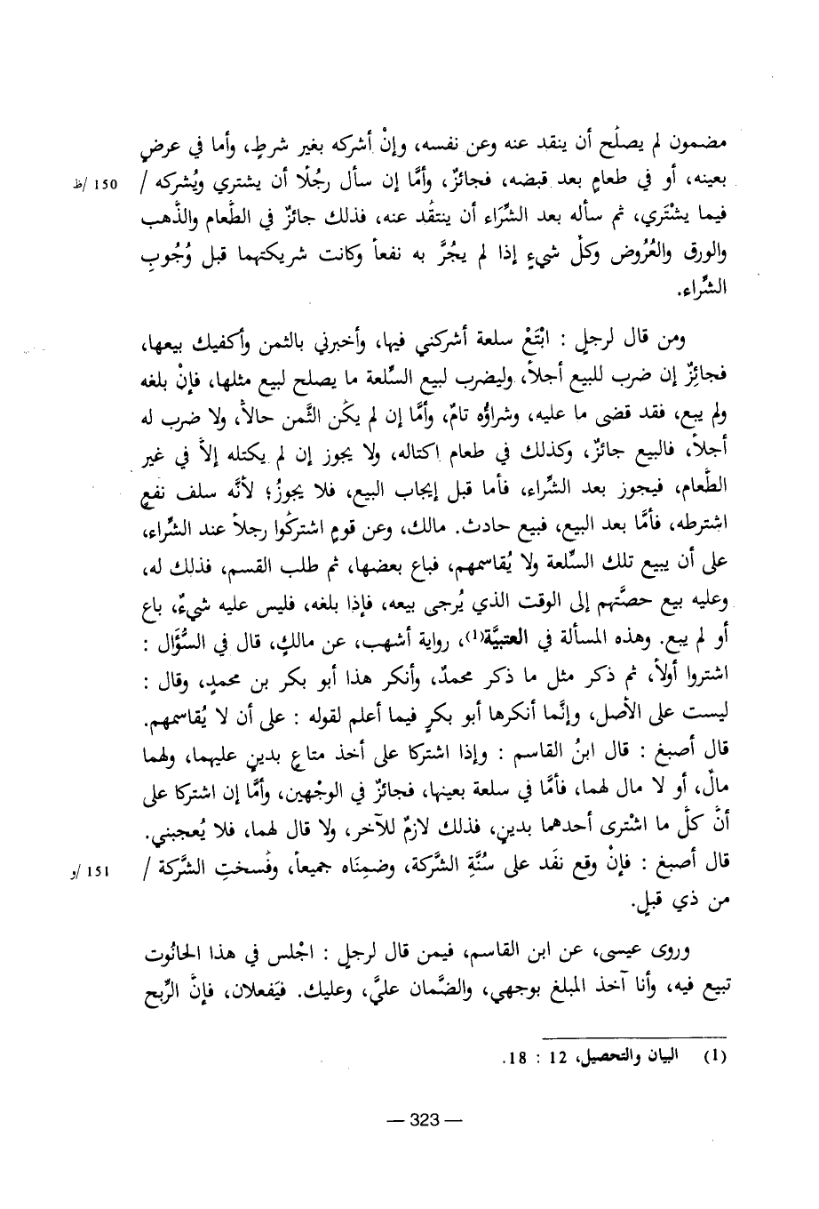ومن قال لرجل: ابتع سلعة أشركني فيها، وأخبرني بالثمن وأكفيك بيعها، فجائز إن ضرب للبيع أجلا، وليضرب لبيع السلعة ما يصلح لبيع مثلها، فإن بلغه ولم يبع، فقد قضى ما عليه، وشراؤه تام، وأما إن لم يكن الثمن حالا، ولا ضرب له أجلا، فالبيع جائز، وكذلك في طعام اكتاله، ولا يجوز إن لم يكتله إلا في غير الطعام، فيجوز بعد الشراء، فأما قبل إيجاب البيع، فلا يجوز؛ لأنه سلف نفع اشترطه، فأما بعد البيع، فبيع حادث. مالك وعن قوم اشتركوا رجلا عند الشراء، على أن يبيع تلك السلعة ولا يقاسمهم، فباع بعضها، ثم طلب القسم، فذلك له، وعليه بيع حصتهم إلى الوقت الذي يرجى بيعه، فإذا بلغه، فليس عليه شيء باع أو لم يبع، وهذه المسألة في العتبية، رواية أشهب، عن مالك، قال في السؤال: اشتروا أولا، ثم ذكر مثل ما ذكر محمد، وأنكر هذا أبو بكر بن محمد، وقال: ليست على الأصل، وإنما أنكرها أبو بكر فيما أعلم لقوله: على أن لا يقاسمهم.