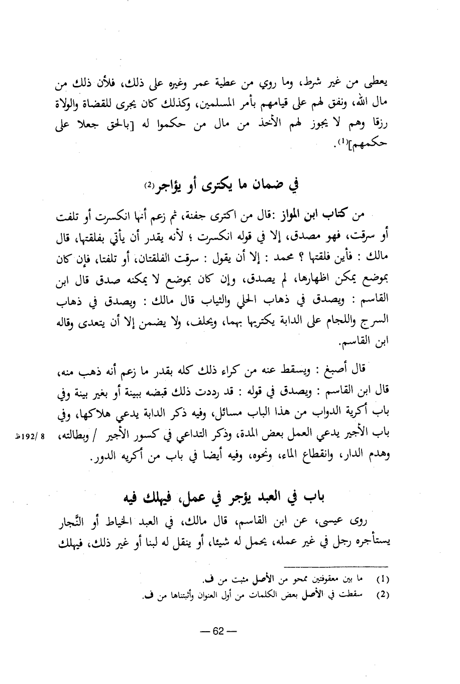 في ضمان ما يكترى أو يؤاجر