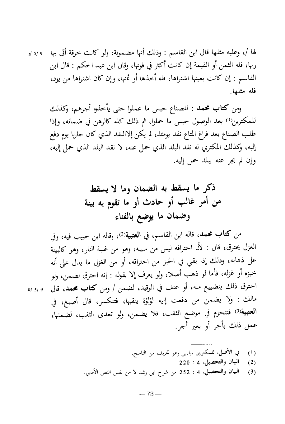 من كتاب محمد، قاله ابن القاسم، في العتبية، وقاله ابن حبيب فيه، وفي الغزل يحترق، قال: لأن احتراقه ليس من سببه، وهو من غلبة النار، وهو كالبينة على ذهابه، وذلك إذا بقي في الخبز من احتراقه، أو من الغزل ما يدل على أنه خبزه أو غزله، فأما لو ذهب أصلا، ولو يعرف إلا بقوله: إنه احترق لضمن، ولو احترق ذلك بتضييع منه، أو عنف في الوقيد، لضمن / ومن كتاب محمد، قال مالك: ولا يضمن من دفعت إليه لؤلؤة يتقبها، فتنكسر، قال أصبغ، في العتبية فتنحزم في موضع الثقب، فلا يضمن، ولو تعدى الثقب، لضمنها، عمل ذلك بأجر أو بغير أجر.