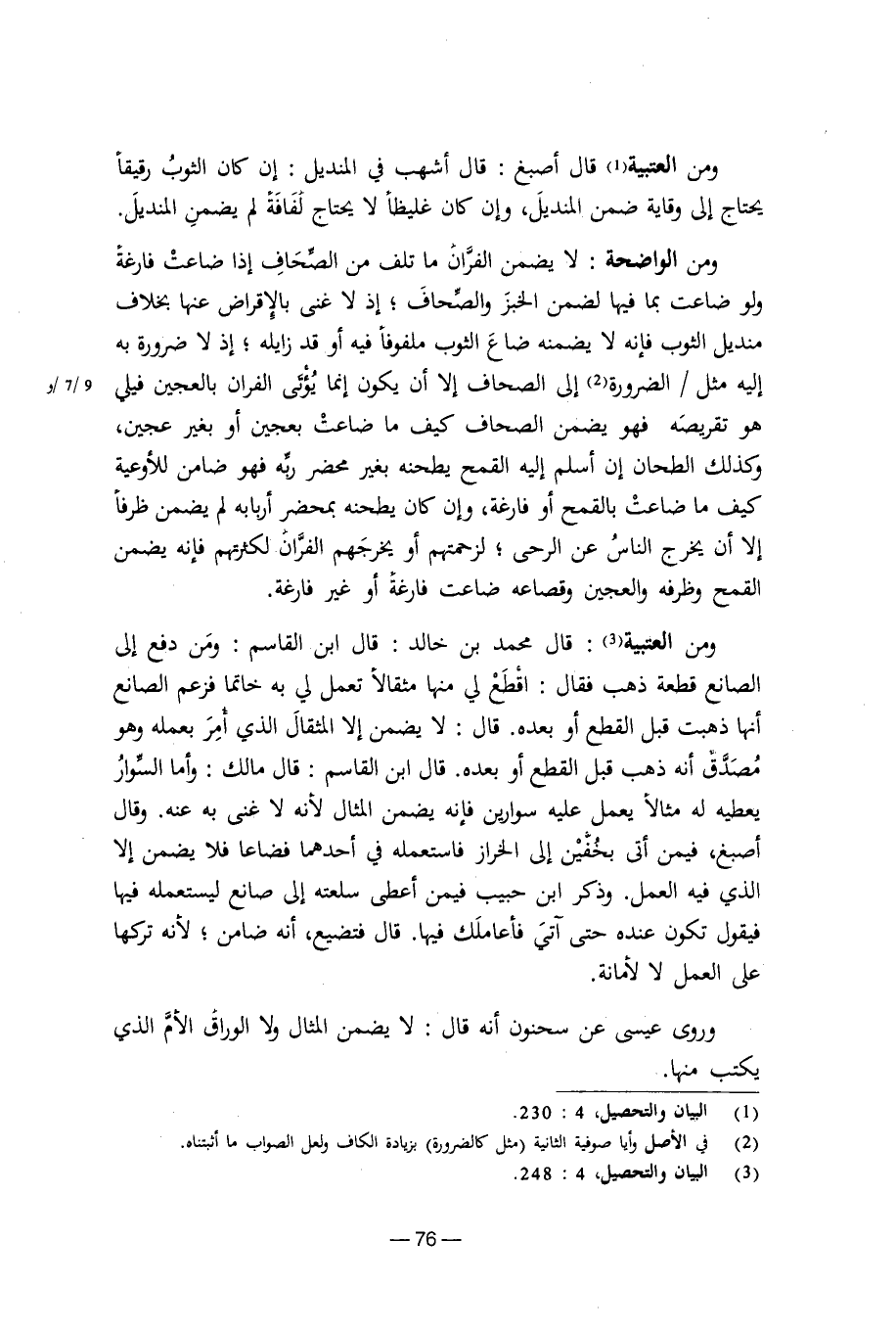 وروى عيسى عن سحنون أنه قال: لا يضمن المثال ولا الوراق الأم الذي يكتب منها.