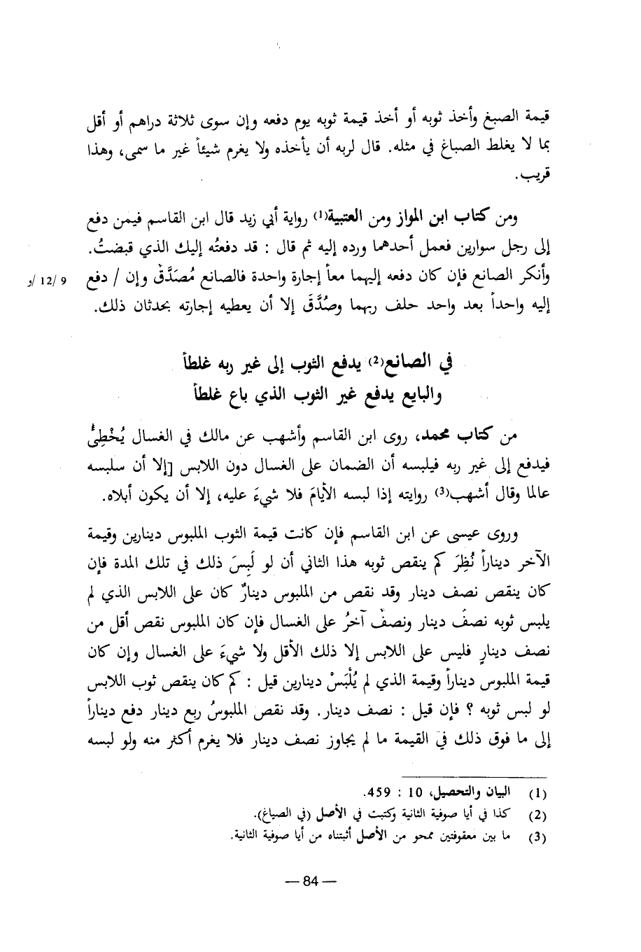 من كتاب محمد، روى ابن القاسم وأشهب عن مالك في الغسال يخطى فيدفع إلى غير ربه فيلبسه أن الضمان على الغسال دون اللابس [إلا أن سلبسه عالما وقال أشهب روايته إذا لبسه الأيام فلا شيء عليه، إلا أن يكون أبلاه.