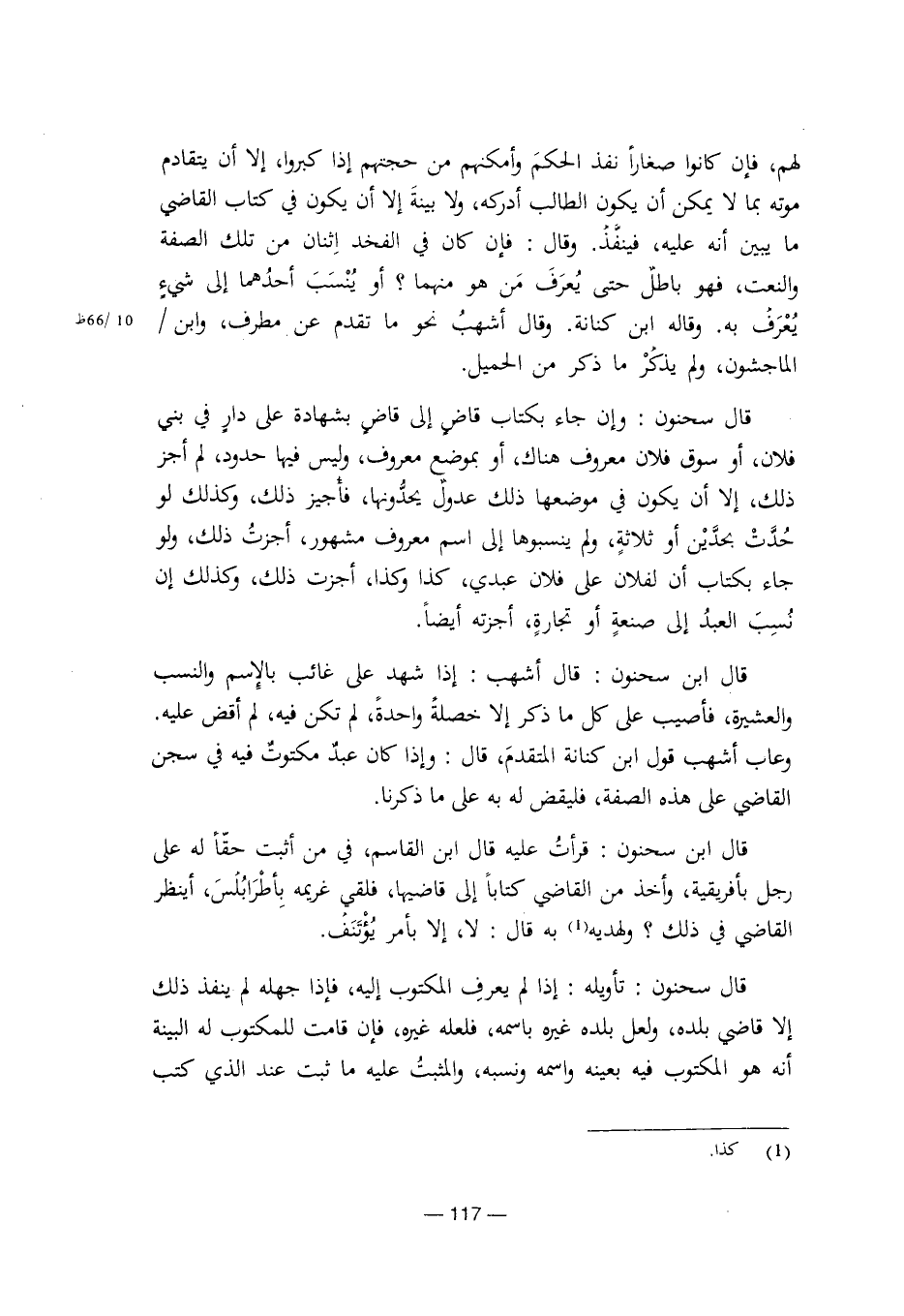 قال سحنون: وإن جاء بكتاب قاضي إلى قاض بشهادة على دار في بني فلان، أو سوق فلان معروف هناك، أو بموضع معروف، وليس فيها حدود، لم أجز ذلك، إلا أن يكون في موضعها ذلك عدول يحدونها، فاجيز ذلك، وكذلك لو حدت بحدين أو ثلاثة، ولم ينسبوها إلى اسم معروف مشهور، أجزت ذلك، ولو جاء بكتاب أن لفلان على فلان عبدي، كذا وكذا، أجزت ذلك، وكذلك إن نسب العبد إلى صنعة أو تجارة، أجزته أيضا.