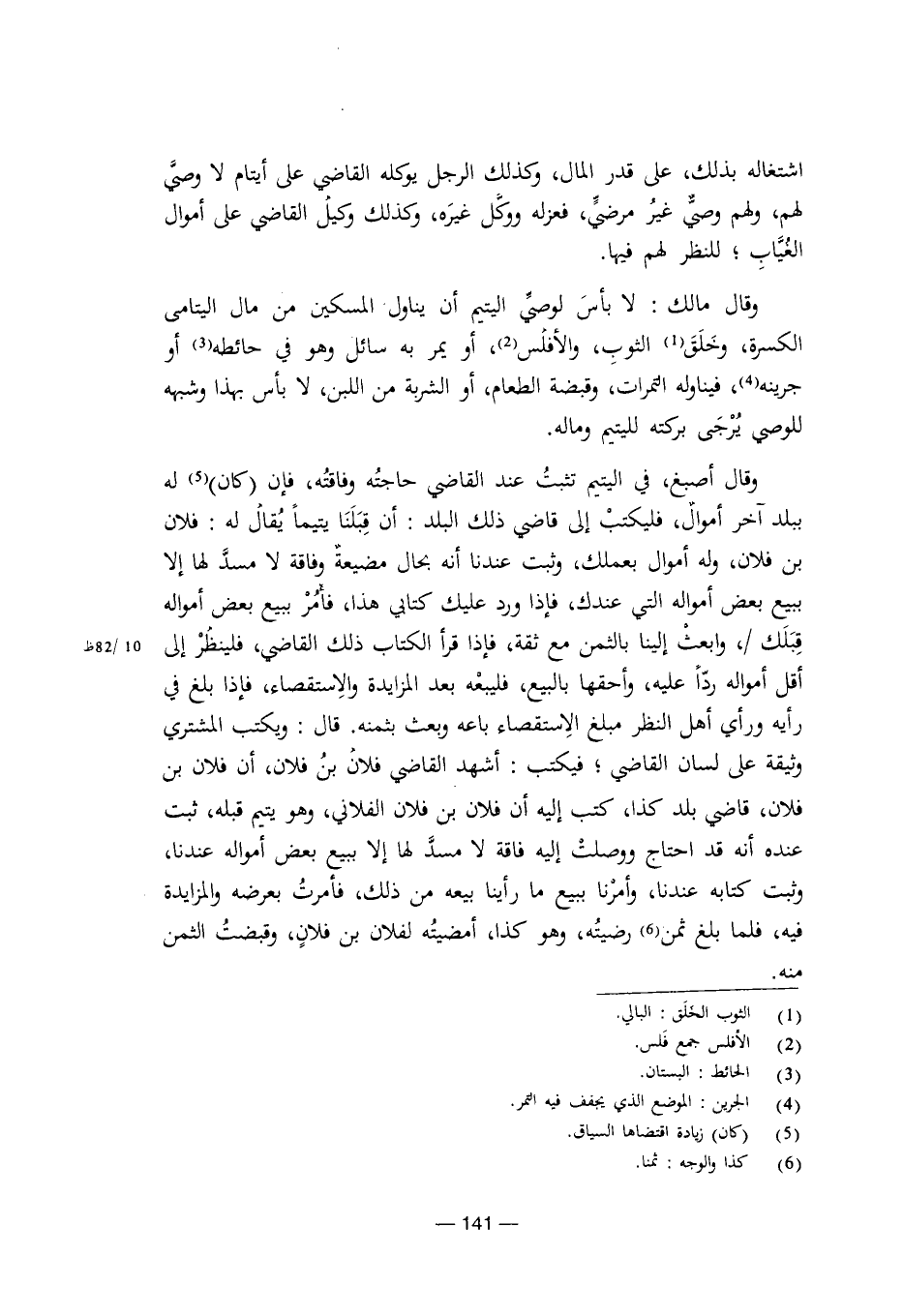 وقال أصبغ، في اليتيم تثبت عند القاضي حاجته وفاقته، فإن (كان) له ببلد آخر أموار، فليكتب إلى قاضي ذلك البلد: أن قبلنا يتيما يقال له: فلان بن فلان، وله أموال بعملك، وثبت عندنا أنه بحال مضيعة وفاقة لا مسد لها إلا ببيع بعض أمواله التي عندك، فإذا ورد عليك كتابي هذا، فأمر ببيع بعض أمواله قبلك/، وابعث إلينا بالثمن مع ثقة، فإذا قرأ الكتاب ذلك القاضي، فلينظر إلى أقل أمواله ردا عليه، وأحقها بالبيع، فليبعه بعد المزايدة والاستقصاء، فإذا بلغ في رأيه ورأي أهل النظر مبلغ الاستقصاء باعه وبعث بثمنه. قال: ويكتب المشتري وثيقة على لسان القاضي؛ فيكتب: أشهد القاضي فلان بن فلان، أن فلان بن فلان، قاضي بلد كذا، كتب إليه أن فلان بن فلان الفلاني، وهو يتيم قبله، ثبت عنده أنه احتاج ووصلت إليه فاقة لا مسد لها إلا ببيع بعض أمواله عندنا، وثبت كتابه عندنا، وأمرنا ببيع ما رأينا بيعه من ذلك، فأمرت بعرضه والمزايدة فيه، فلما بلغ ثمن رضيته، وهو كذا، أمضيته لفلان بن فلان، وقبضت الثمن منه. [8/ 141]