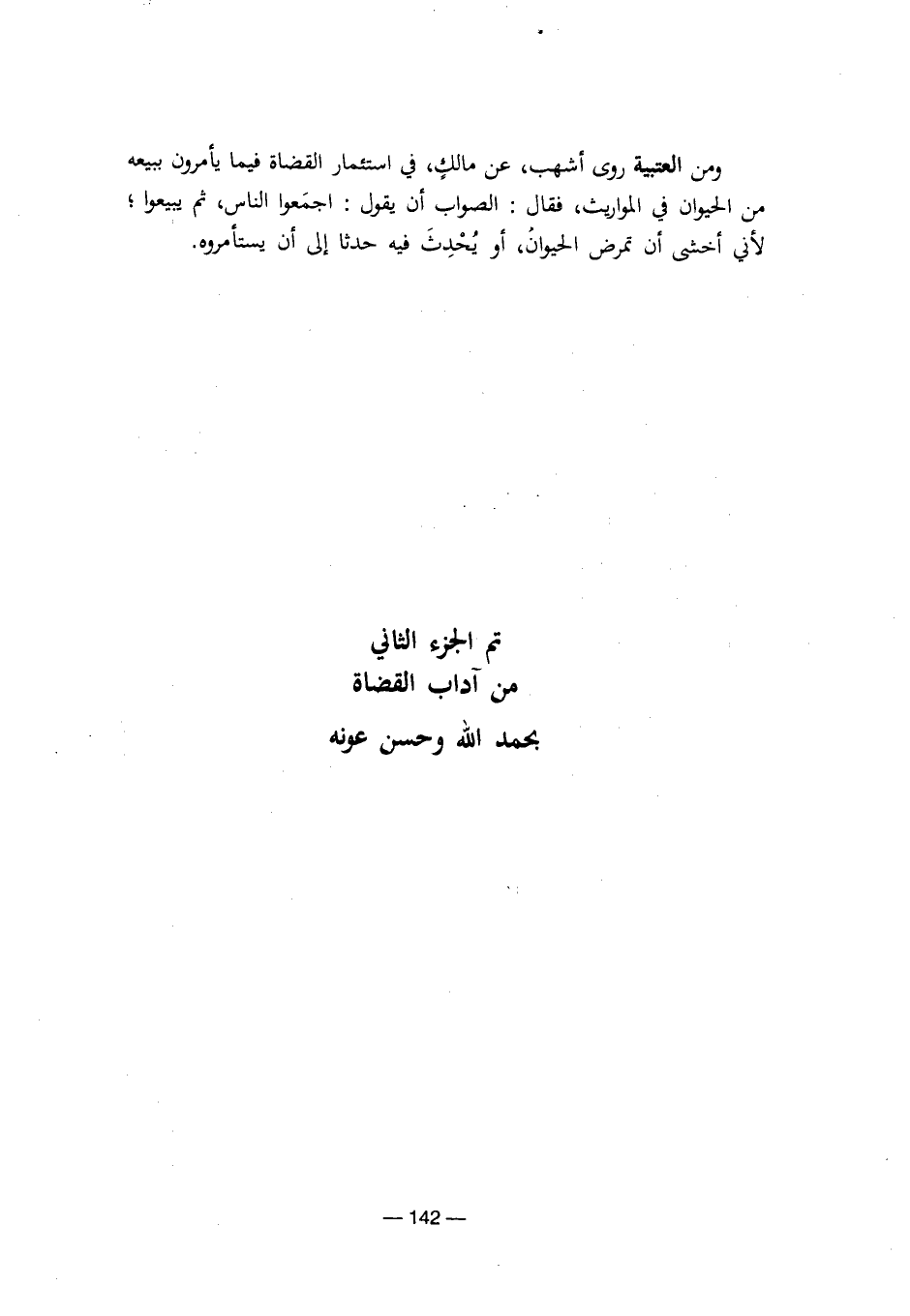 ومن العتبية روى أشهب، عن مالك، في استئمار القضاة فيما يأمرون ببيعه من الحيوان في المواريث، فقال: الصواب أن يقول: اجمعوا الناس، ثم يبيعوا؛ لأني أخشى أن تمرض الحيوان، أو يحدث فيه حدثا إلى أن يستأمروه.