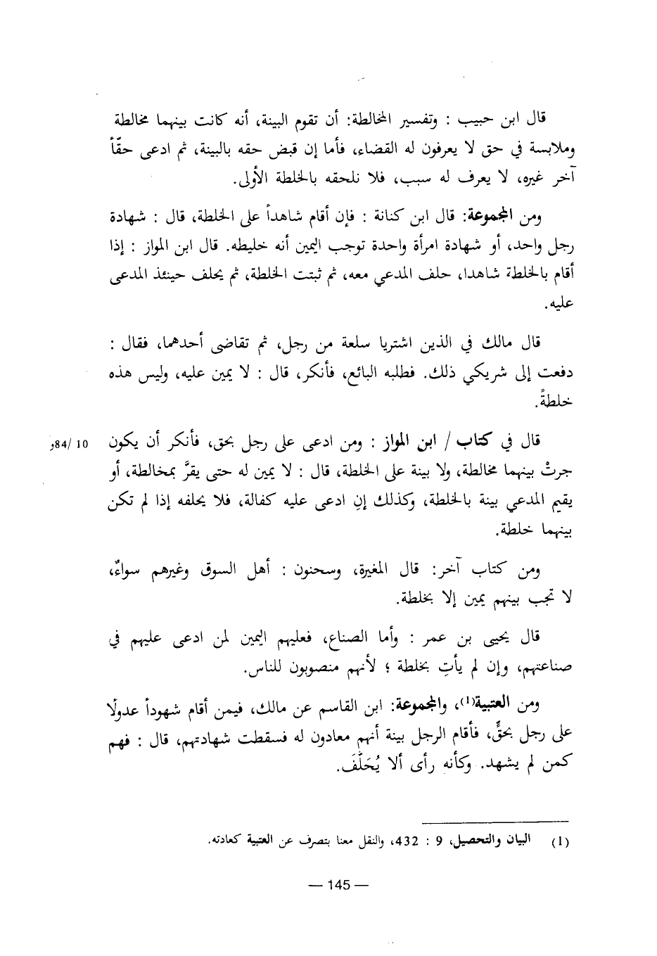 ومن المجموعة: قال ابن كنانة: فإن أقام شاهدا على الخلطة، قال: شهادة رجل واحد، أو شهادة امرأة واحدة توجب اليمين انه خليطه. قال ابن المواز: إذا أقام بالخلطة شاهدا، حلف المدعي معه، ثم ثبتت الخلطة، ثم يحلف حينئذ المدعي عليه.