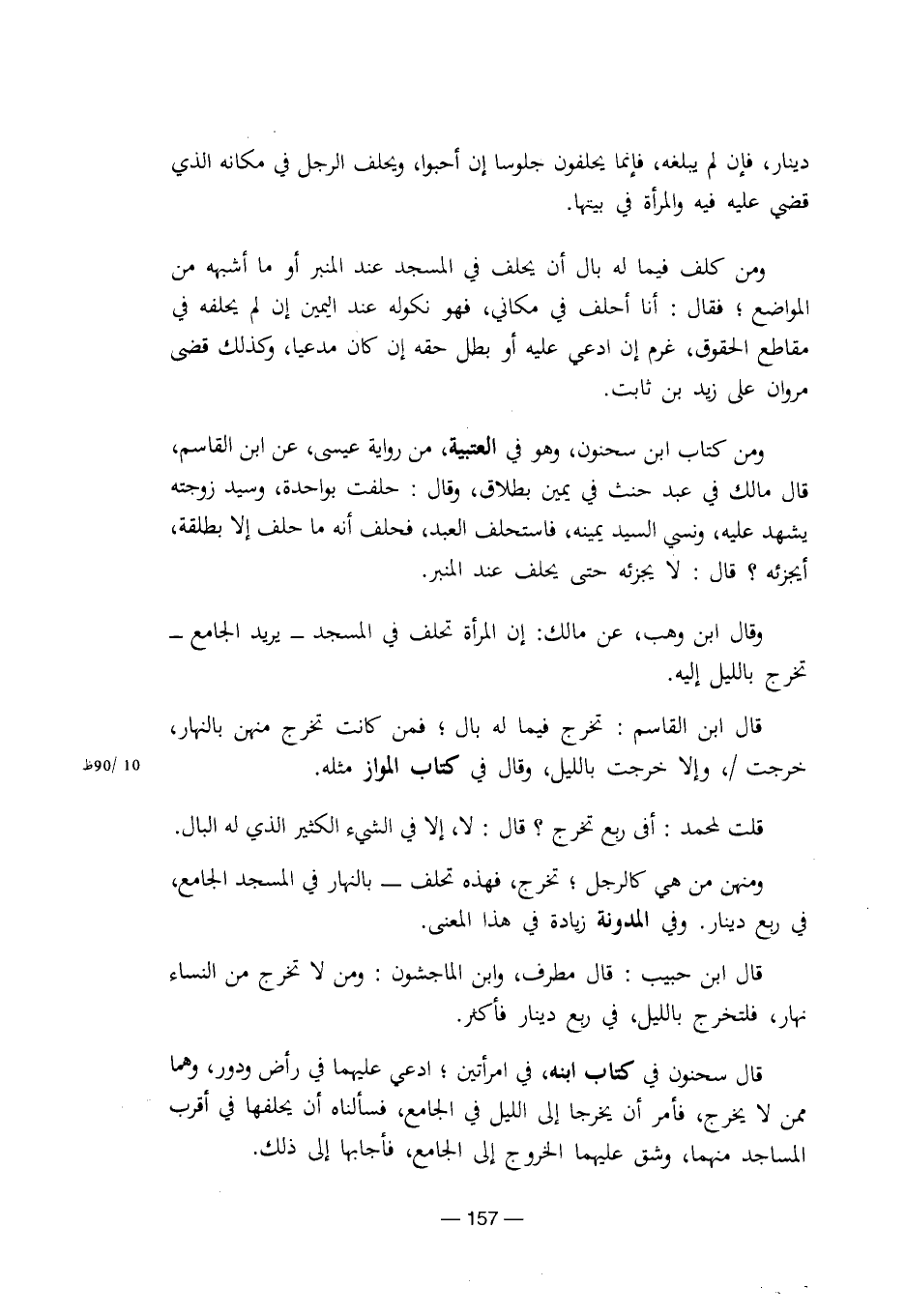 وقال ابن وهب، عن مالك: إن المرأة تحلف في المسجد – يريد الجامع- تخرج بالليل إليه.