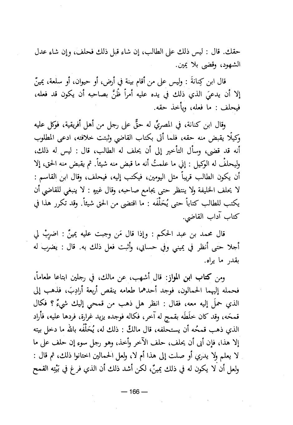 قال ابن كنانة: وليس على من أقام بينة في أرض، أو حيوان، أو سلعة، يمين إلا أن يدعي الذي ذلك في يده عليه أمرأ ظن بصاحبه أن يكون قد فعله، فيحلف: ما فعله، ويأخذ حقه.