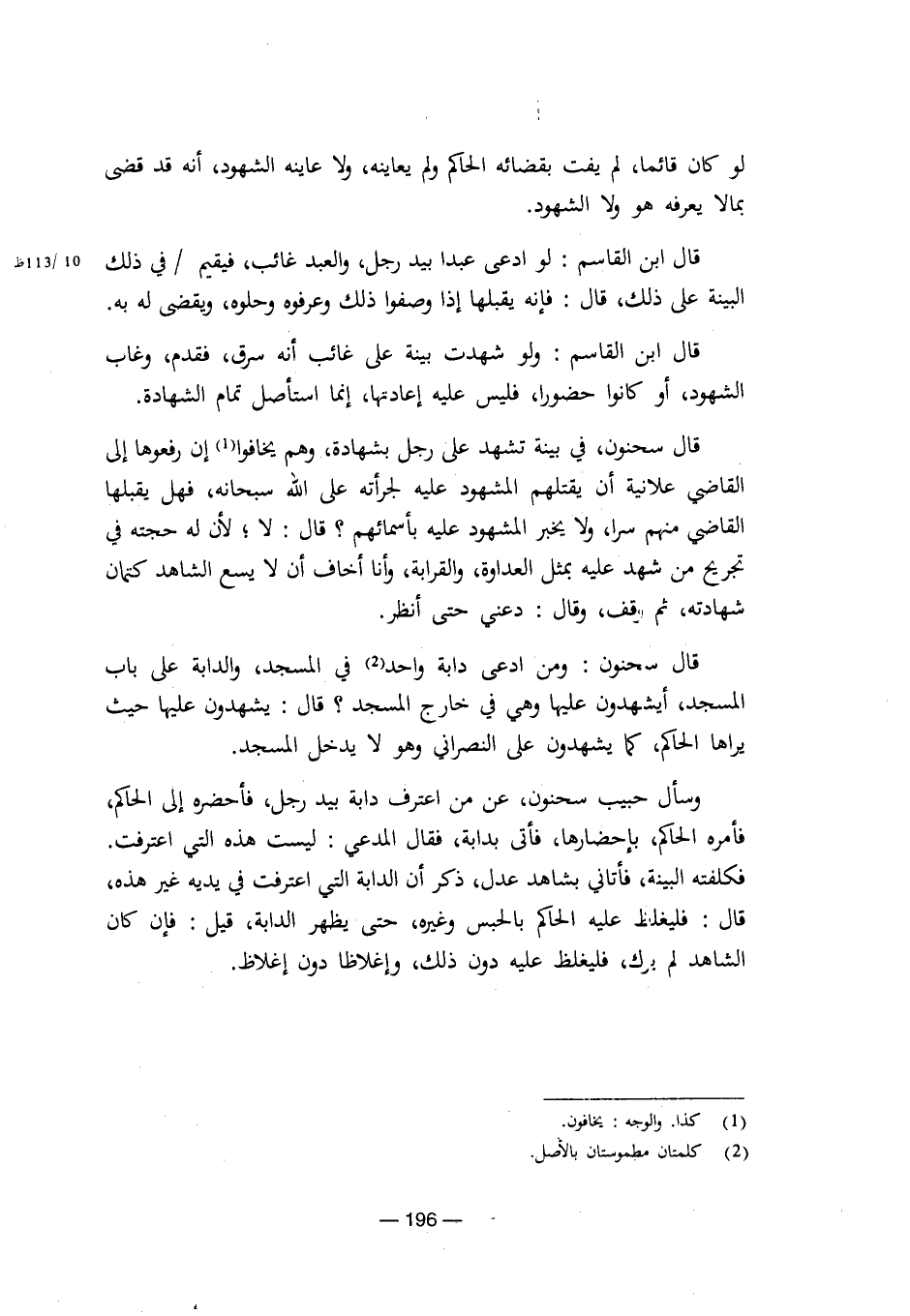 قال سحنون: ومن ادعى دابة واحد في المسجد، والدابة على باب المسجد، أيشهدون عليها وهي في خارج المسجد؟ قال: يشهدون عليها حيث يراها الحاكم، كما يشهدون على النصراني وهو لا يدخل المسجد.