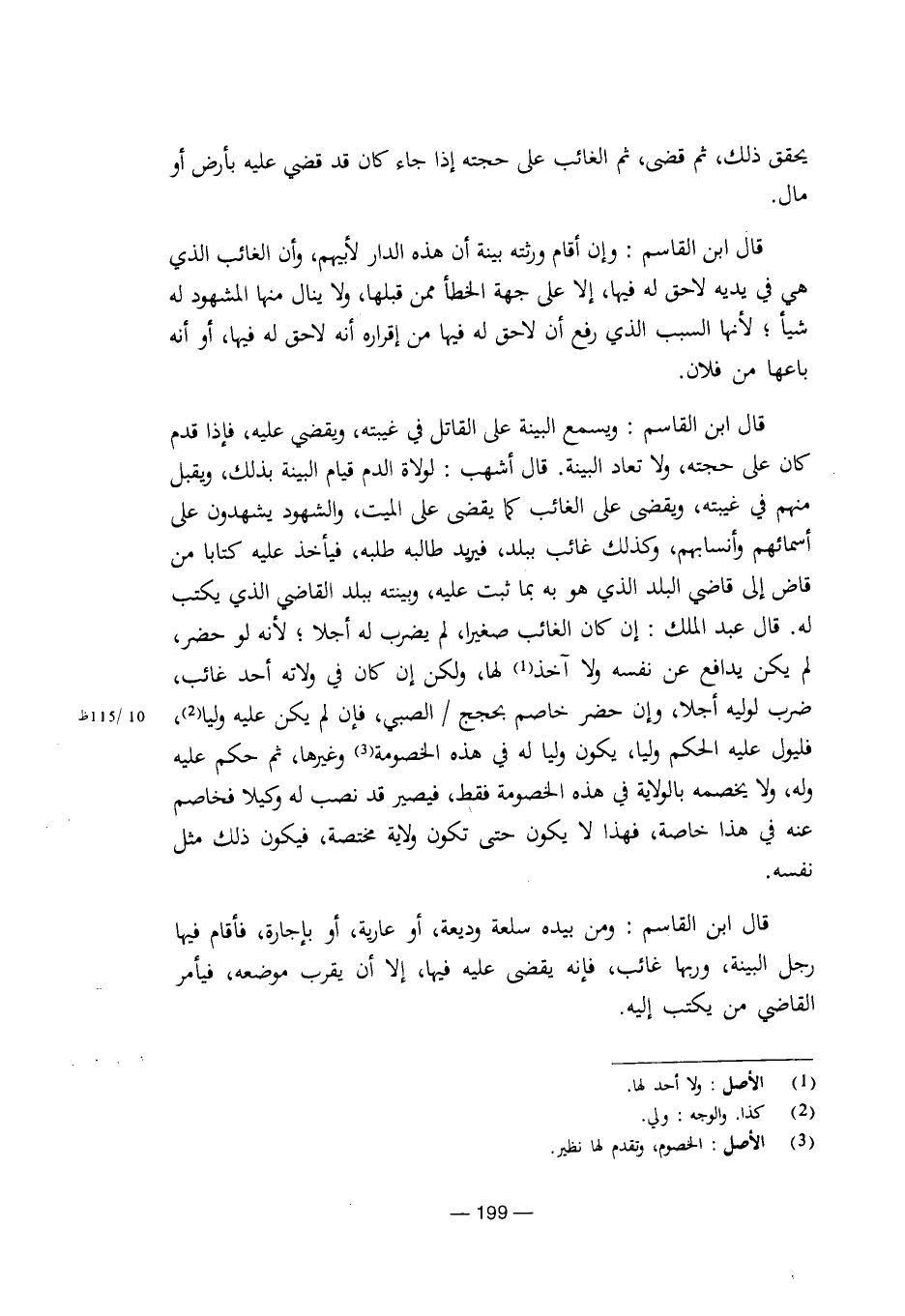 قال ابن القاسم: ويسمع البينة على القاتل في غيبته، ويقضي عليه، فإذا قدم كان على حجته، ولا تعاد البينة. قال أشهب: لولاة الدم قيام البينة بذلك، ويقبل منهم في غيبته، ويقضي على الغائب كما يقضي على الميت، والشهود يشهدون على اسمائهم وأنسابهم، وكذلك غائب ببلد، فيريد طالبه طلبه، فيأخذ عليه كتابا من قاض إلى قاضي البلد الذي هو به بما ثبت عليه، وبينته ببلد القاضي الذي يكتب له. قال عبد الملك: إن كان الغائب صغيرا، لم يضرب له أجلا؛ لأنه لو حضر، لم يكن يدافع عن نفسه ولا آخذ لها، ولكن إن كان في ولاته أحد غائب، ضرب لوليه أجلا، وإن حضر خاصم بحجج/ الصبي، فإن لم يكن عليه وليا، فليول عليه الحكم وليا، يكون وليا له في هذه الخصومة وغيرها، ثم حكم عليه وله، ولا يخصمه بالولاية في هذه الخصومة فقط، فيصير قد نصب له وكيلا فخاصم عنه في هذه خاصة، فهذا لا يكون حتى تكون ولاية مختصة، فيكون ذلك مثل نفسه.