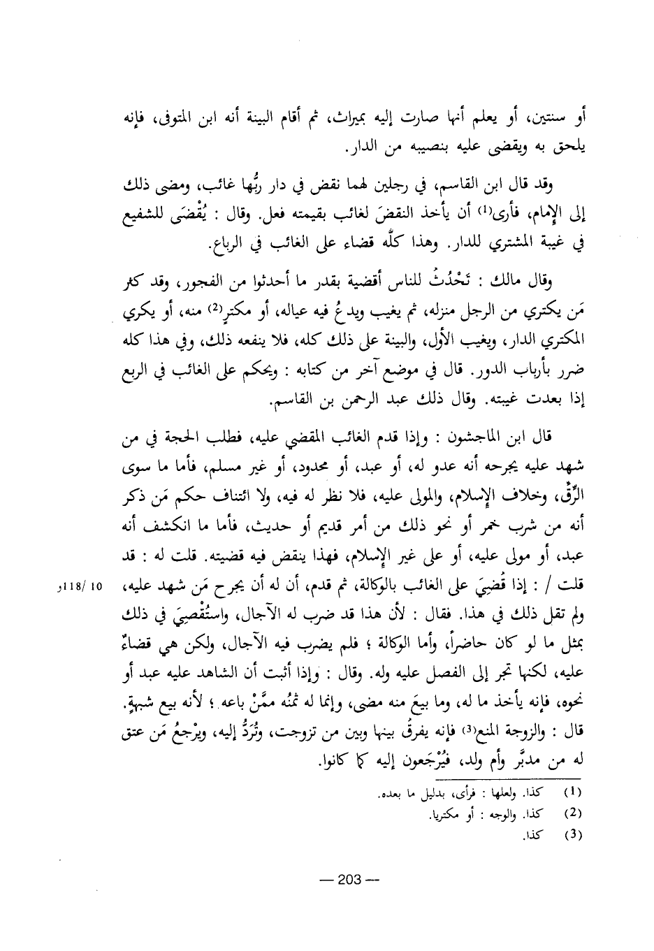 وقال مالك: تحدث للناس أقضية بقدر ما أحدثوا من الفجور، وقد كثر من يكتري من الرجل منزله، ثم يغيب ويدع فيه عياله، أو مكتر منه، أو يكري المكتري الدار، ويغيب الأول، والبينة على ذلك كله، فلا ينفعه ذلك، وفي هذا كله ضرر بأرباب الدور. قال في موضع آخر من كتابه: ويحكم على الغائب في الربع إذا بعدت غيبته. وقال ذلك عبد الرحمن بن القاسم.