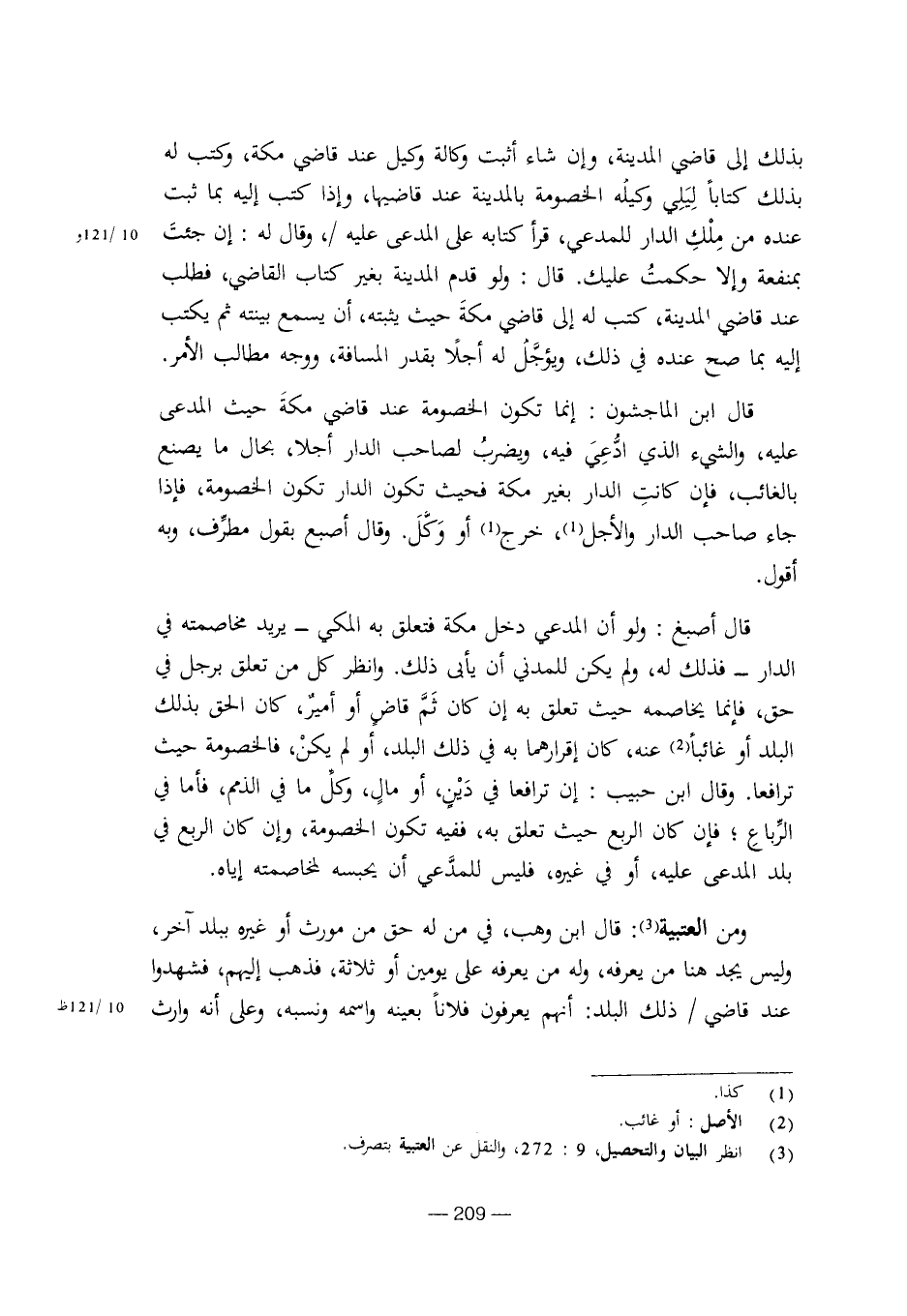 بذلك إلى قاضي المدينة، وإن شاء أثبت وكالة وكيل عند قاضي مكة، وكتب له بذلك كتابا ليلي وكيله الخصومة بالمدينة عند قاضيها، وإذا كتب إليه بما ثبت عنده من ملك الدار للمدعي، قرأ كتابه على المدعى عليه/، وقال له: إن جئت بمنفعة وإلا حكمت عليك. قال: ولو قدم المدينة بغير كتاب القاضي، فطلب عند قاضي المدينة، كتب له إلى قاضي مكة حيث يثبته، أن يسمع بينته ثم يكتب إليه بما صح عنده في ذلك، ويؤجل له أجلا بقدر المسافة، ووجه مطالب الأمر.