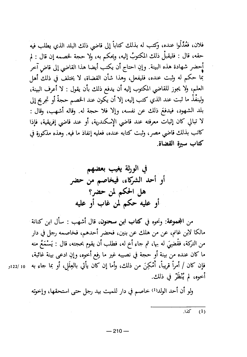 في الورثة يغيب بعضهم أو أحد الشركاء، فيخاصم من حضر هل الحكم لمن حضر؟ أو عليه حكم لمن غاب أو عليه