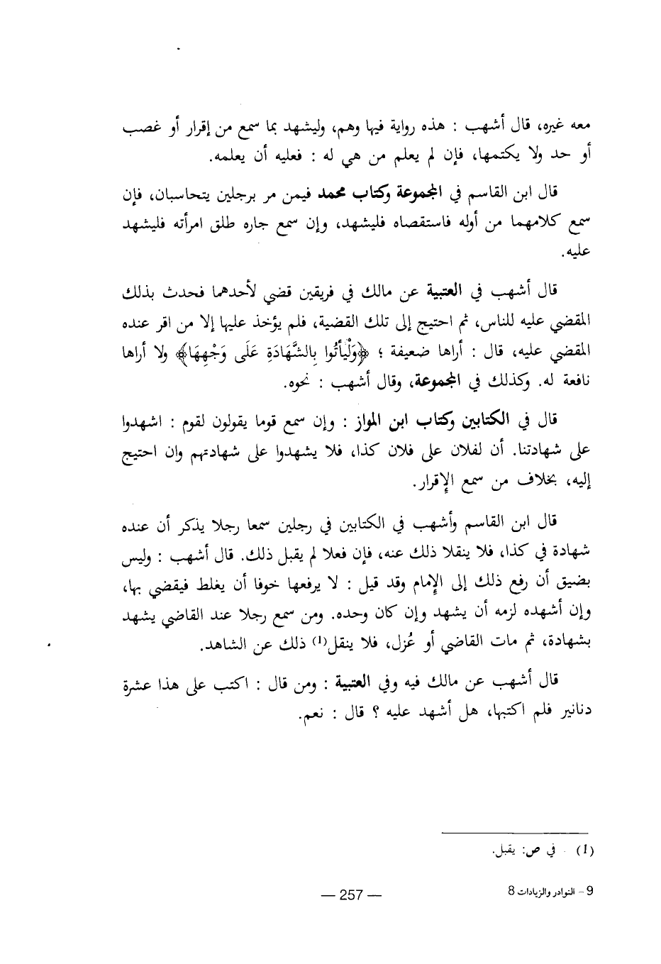كتاب النوادر والزيادات على ما في المدونة من غيرها من الأمهات (اسم الجزء: 8)