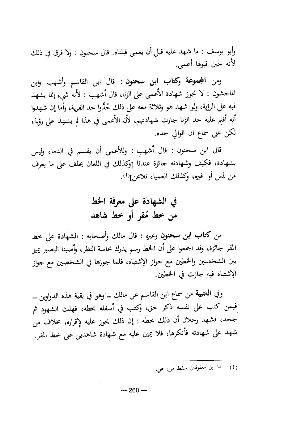 من كتاب ابن سحنون وغيره: قال مالك وأصحابه: الشهادة على خط المقر جائزة، وقد اجمعوا على أن الخط رسم يدرك بحاسة النظر، وأصبنا البصير يميز بين الشخصين والخطين مع جواز الاشتباه، فلما جوزها في الشخصين مع جواز الاشتباه فيه جازت في الخطين.