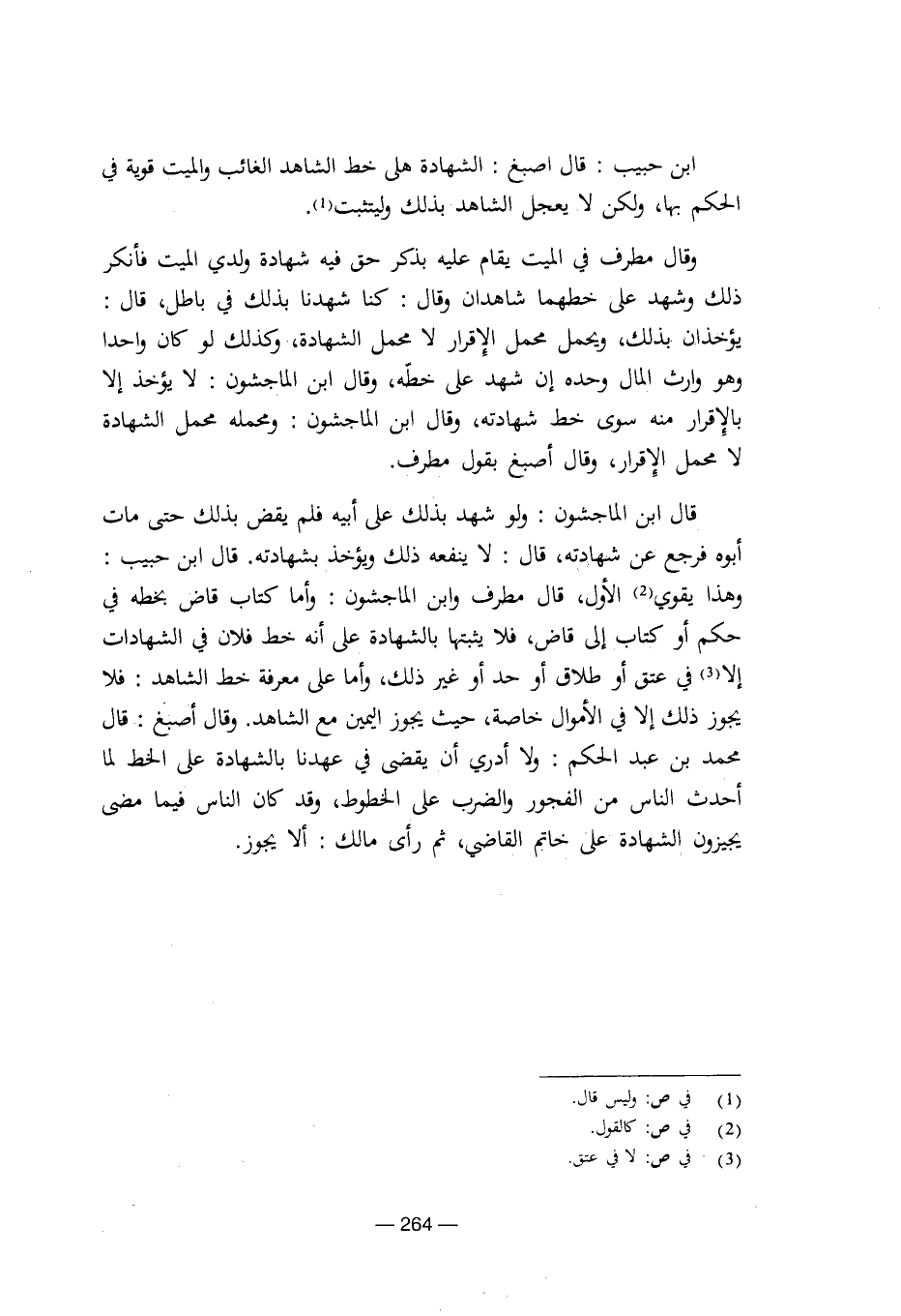 ابن حبيب: قال أصبغ: الشهادة على خط الشاهد الغائب والميت قوية في الحكم بها، ولكن لا يعجل الشاهد بذلك وليثبت.