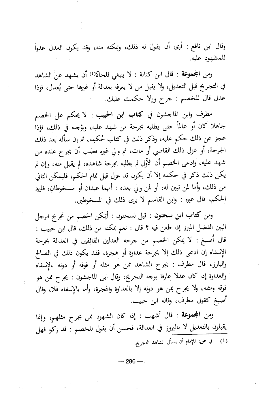 ومن المجموعة: قال ابن كنانة: لا بنبغي للحاكم أن يشهد عن الشاهد في التجريح قبل التعديل، ولا يقبل من لا يعرفه بعدالة أو غيرها حتى يعدل، فإذا عدل قال للخصم: جرح وإلا حكمت عليك.
