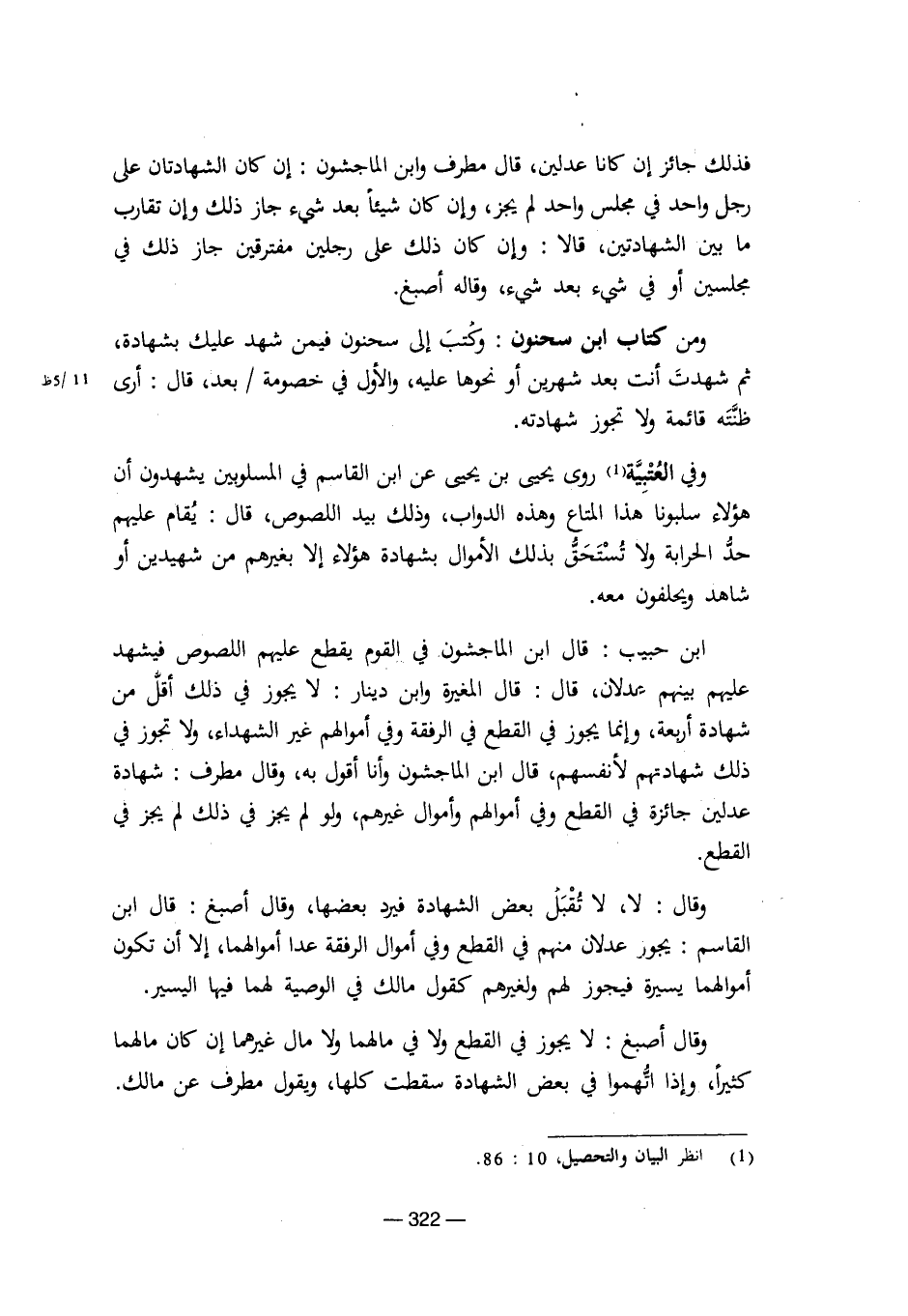 ابن حبيب: قال ابن الماجشون في القوم يقطع عليهم اللصوص فيشهد عليهم بينهم عدلان، قال: قال المغيرة وابن دينار: لا يجوز في ذلك أقل من شهادة أربعة، وإنما يجوز في القطع في الرفقة وفي أموالهم غير الشهداء، ولا تجوز في ذلك شهادتهم لأنفسهم، قال ابن الماجشون وأنا أقول به، وقال مطرف: شهادة عدلين جائزة في القطع وفي أموالهم وأموال غيرهم، ولو لم يجز في ذلك لم يجز في القطع.