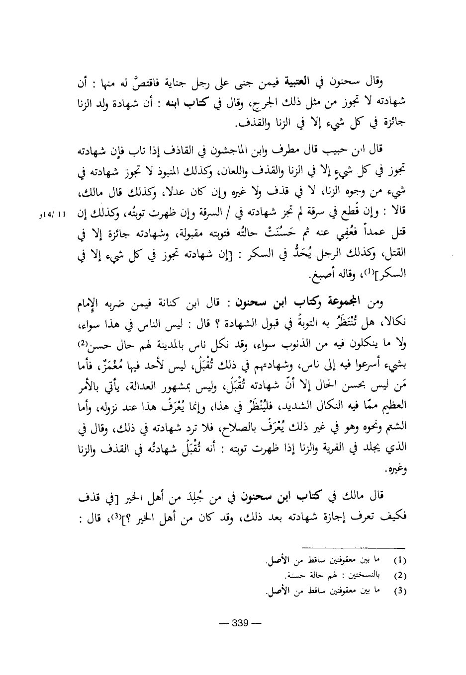 ومن المجموعة وكتاب ابن سحنون: قال ابن كنانة فيمن ضربه الإمام نكالا، هل تنتظر به التوبة في قبول الشهادة؟ قال: ليس الناس في هذا سواء، ولا ما ينكلون فيه من الذنوب سواء، وقد نكل ناس بالمدينة لهم حال حسن بشيء أسرعوا فيه إلى ناس، وشهادتهم في ذلك تقبل، ليس لأحد فيها مغمز، فأما من ليس بحسن الحال إلا أن شهادته تقبل، وليس بمشهور العدالة، يأتي بالأمر العظيم مما فيه النكال الشديد، فلينظر في هذا، وإنما يعرف هذا عند نزوله، وأما الشتم ونحوه وهو في غير ذلك يعرف بالصلاح، فلا ترد شهادته في ذلك، وقال في الذي يجلد في الفرية والزنا إذا ظهرت توبته: أنه تقبل شهادته في القذف والزنا وغيره.