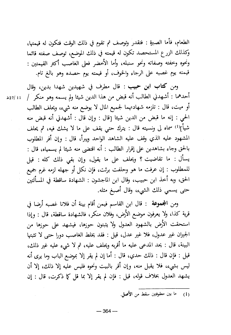 ومن كتاب ابن حبيب: قال مطرف في شهيدين شهدا بدين، وقال أحدهما: أشهدني الطالب أنه قبض من هذا الدين شيئا ولم يسمه وهو منكر/ أو ميت، قال: تلزمه شهادتهما لجميع المال لا يوضع منه شيء، ويحلف الطالب الحي: إنه ما قبض من الدين شيئا [قال: وإن قال: أشهدني أنه قبض منه شيئاً] سماه لى ونسيته قال: يترك حتى يقف على ما لا يشك فيه، ثم يحلف المشهود عليه الذي وقف عليه الشاهد الواحد ويبرأ، قال: وإن أفر المطلوب بالحق وجاء بشاهدين على إقرار الطالب: أنه اقتضى منه شيئا لم يسمياه، قال: يسأل: ما تقاضيت؟ ويحلف على ما يقول، وإن بقي ذلك كله: قيل للمطلوب: إن عرفت ما هو وحلفت برئت، فإن نكل أو جهله لزمه غرم جميع الحق، وبه أخذ ابن حبيب، وقال ابن الماجشون: الشهادة ساقطة في المسألتين حتى يسمي ذلك الشيء، وقال أصبغ مثله.