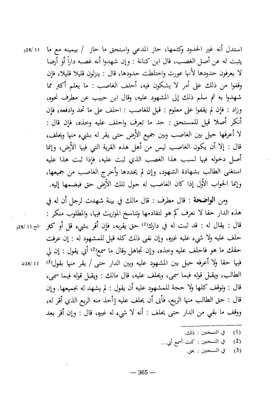 ومن الواضحة: قال مطرف: قال مالك في بينة شهدت لرجل أن له في هذه الدار حقا لا نعرف كم هو لتقادمها وتناسخ المواريث فيها، والمطلوب منكر: وقال: يقال له: قد ثبت له في دارك حق بقربه، فإن أقر بشيء قل أو كثر حلف عليه ولا شيء عليه غيره، وإن نفى ذلك كله قيل للمشهود له: إن عرفت حقك ما هو فاحلف عليه وخذه، وإن تجاهل وقال ما سمع أبي يقول: إن لي فيها حقا ولا أعرفه حيل بين المشهود عليه وبين الدار حتى/ يقر منها بقول الطالب، ويقبل قوله فيما سمى، ويحلف عليه، قال مالك: ويقبل قوله فيما سمى، قال: وتوقف كلها ولا حجة للمشهود عليه أن يقول: لم يشهد له بجميعها. وإن قال: حق الطالب منها الربع، فأبى أن يحلف عليه [أخذ منه الربع الذي أقر له، ووقف ما بقي من الدار حتى يحلف: أنه لا شيء له غيره، قال: وإن أقر بعد [8/ 365]