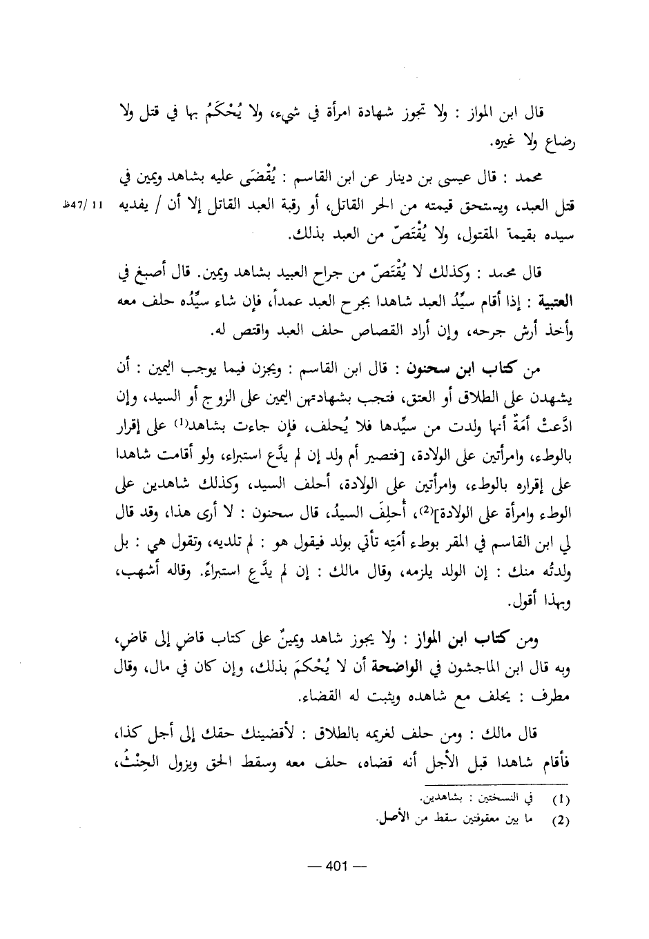 من كتاب ابن سحنون: قال ابن القاسم: ويجزن فيما يوجب اليمين: أن يشهدن على الطلاق أو العتق، فتجب بشهادتهن اليمين على الزوج أو السيد، وإن ادعت أمة أنها ولدت من سيدها فلا يحلف، فإن جاءت بشاهد على إقرار بالوطء، وامرأتين على الولادة، [فتصير أم ولد إن لم يدع استبراء، ولو أقامت شاهدا على إقراره بالوطء، وامرأتين على الولادة، وأحلف السيد، وكذلك شاهدين على الوطء وامرأة على الولادة]، أحلف السيد، قال سحنون: لا أرى هذا، وقد قال لي ابن القاسم في المقر بوطء أمته تأتي بولد فيقول هو: لم تلديه، وتقول هي: بل ولدته منك: إن الولد يلزمه، وقال مالك: إن لم يدع استبراء. وقاله أشهب، وبهذا أقول.
