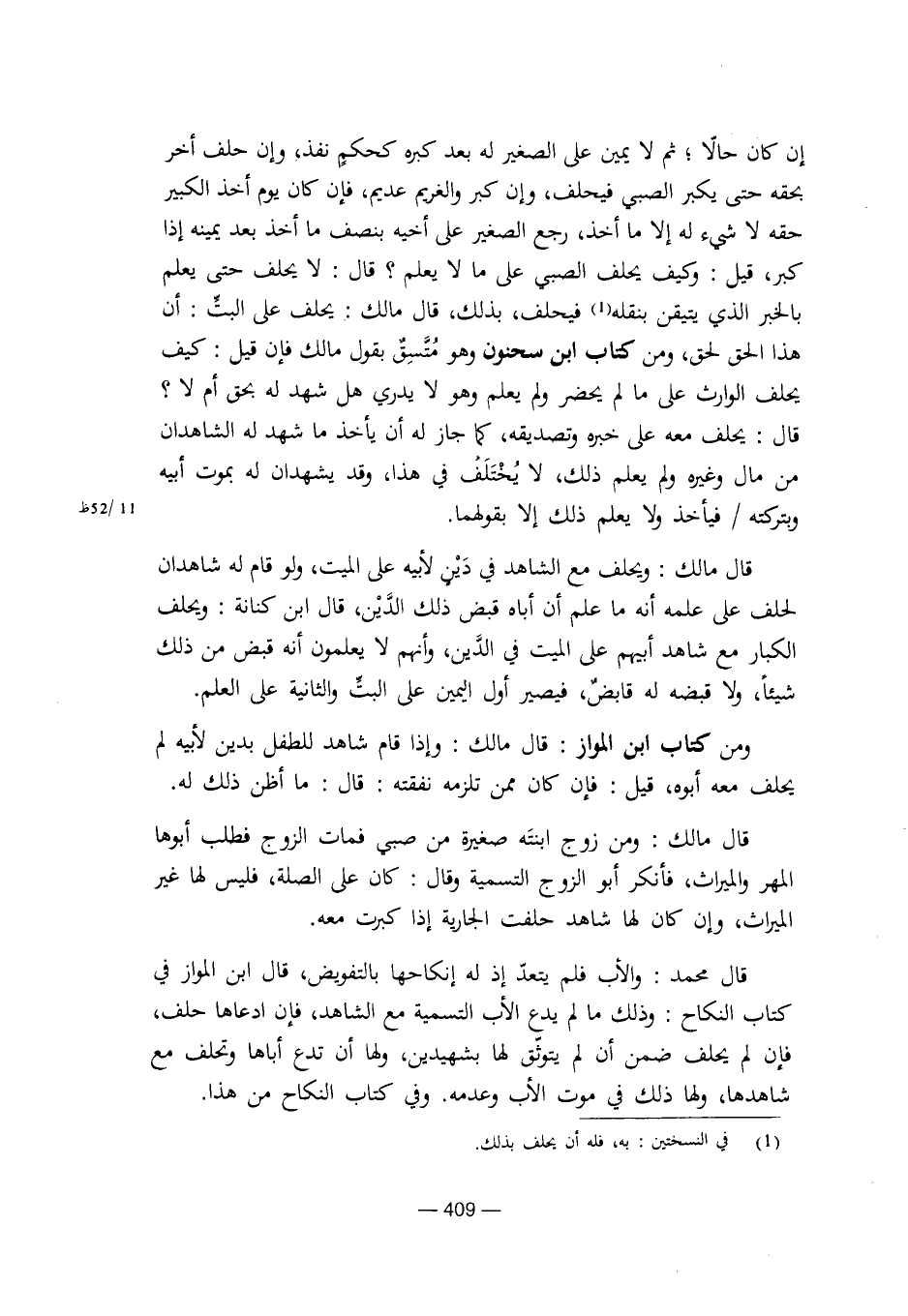 إن كان حالا؛ ثم لا يمين على الصغير له بعد كبره كحكم نفذ، وإن حلف أخر بحقه حتى يكبر الصبي فيحلف، وإن كبر والغريم عديم، فإن كان يوم أخذ الكبير حقه لا شيء له إلا ما أخذ، رجع الصغير على أخيه بنصف ما أخذ بعد يمينه إذا كبر، قيل: وكيف يحلف الصبي على ما لا يعلم؟ قال: لا يحلف حتى يعلم بالخبر الذي يتيقن بنقله فيحلف، بذلك، قال مالك: يحلف على البت: أن هذا الحق لحق، ومن كتاب ابن سحنون وهو متسق بقول مالك فإن قيل: كيف يحلف الوارث على ما لم يحضر ولم يعلم وهو لا يدري هل شهد له بحق أم لا؟ قال: يحلف معه على خبره وتصديقه، كما جاز له أن يأخذ ما شهد له الشاهدان من مال وغيره ولم يعلم ذلك، لا يختلف في هذا، وقد يشهدان له بموت أبيه وبتركته/ فيأخذ ولا يعلم ذلك إلا بقولهما.