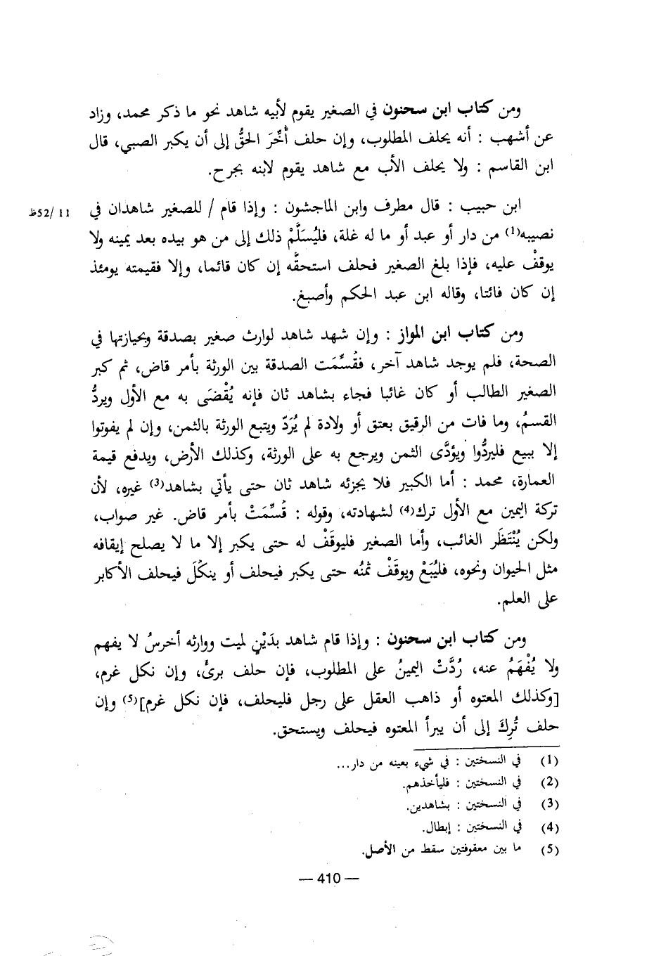 ومن كتاب ابن سحنون: وإذا قام شاهد بدين لميت ووارثه أخرس لا يفهم ولا يفهم عنه، ردت اليمين على المطلوب، فإن حلف برئ، وإن نكل غرم، [وكذلك المعتوه أو ذاهب العقل على رجل فليحلف، فإن نكل غرم] وإن حلف ترك إلى يبرأ المعتوه فيحلف ويستحق. [8/ 410]