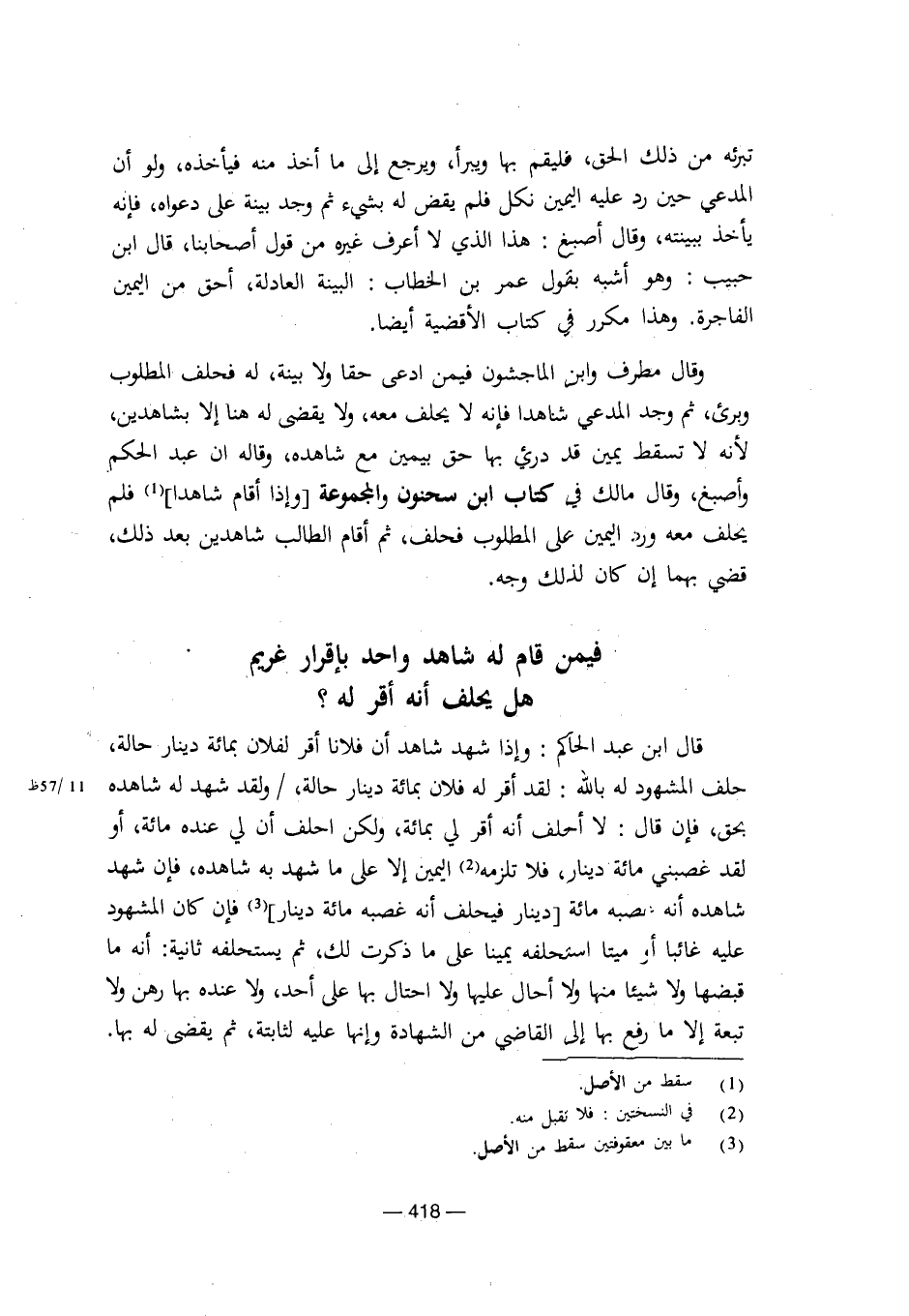 فيمن قام له شاهد واحد بإقرار غريم