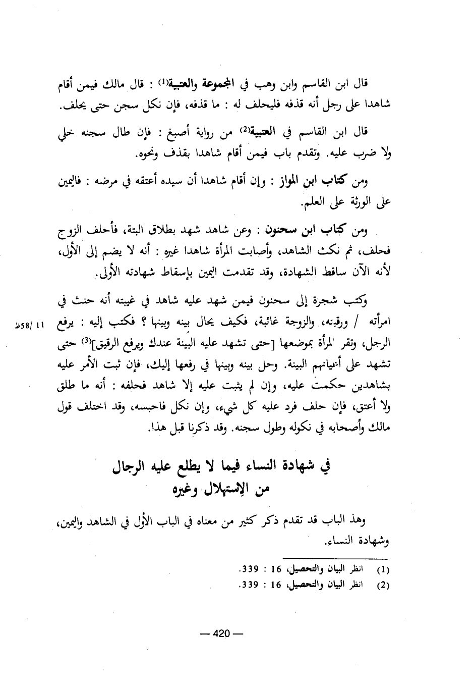 وهذا الباب قد تقدم ذكر كثير من معناه في الباب الأول في الشاهد واليمين، وشهادة النساء. [8/ 420]