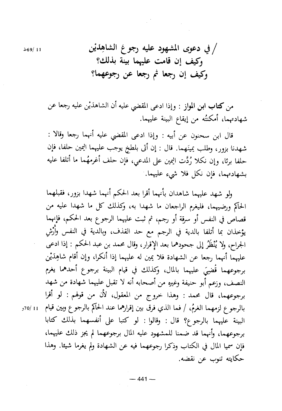 / في دعوى المشهود عليه رجوع الشاهدين