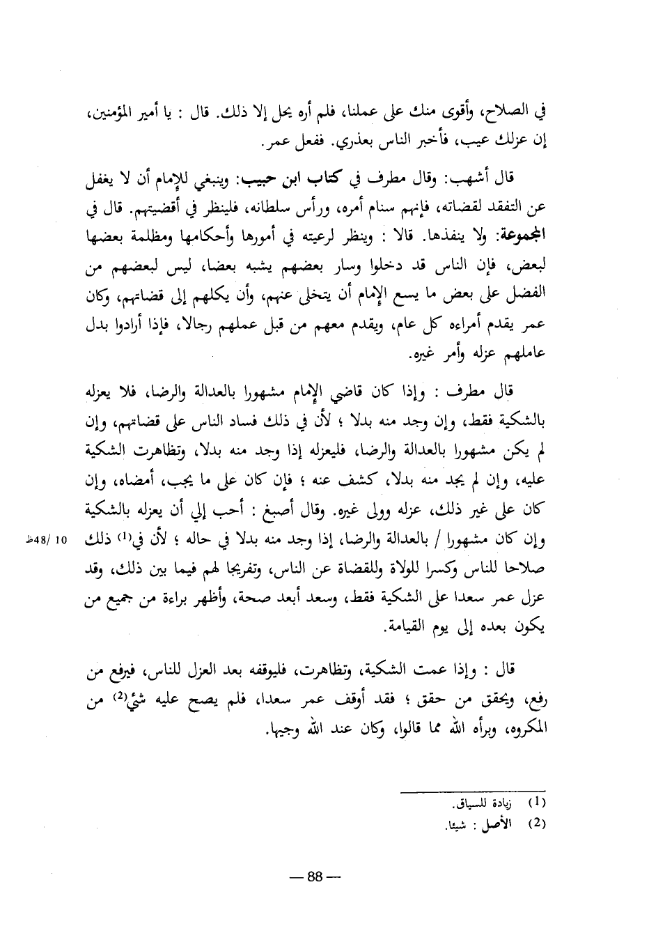 قال: وإذا عمت الشكية، وتظاهرت، فليوقفه بعد العزل للناس، فيرفع من رفع، ويحقق من حقق؛ فقد أوقف عمر سعدا، فلم يصح عليه شيء من المكروه، وبرأه الله مما قالوا، وكان عند الله وجيها. [8/ 88]
