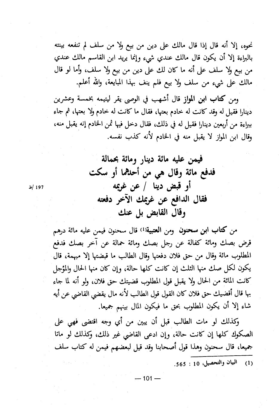 (¬1) البيا والتحصيل، 10: 565.