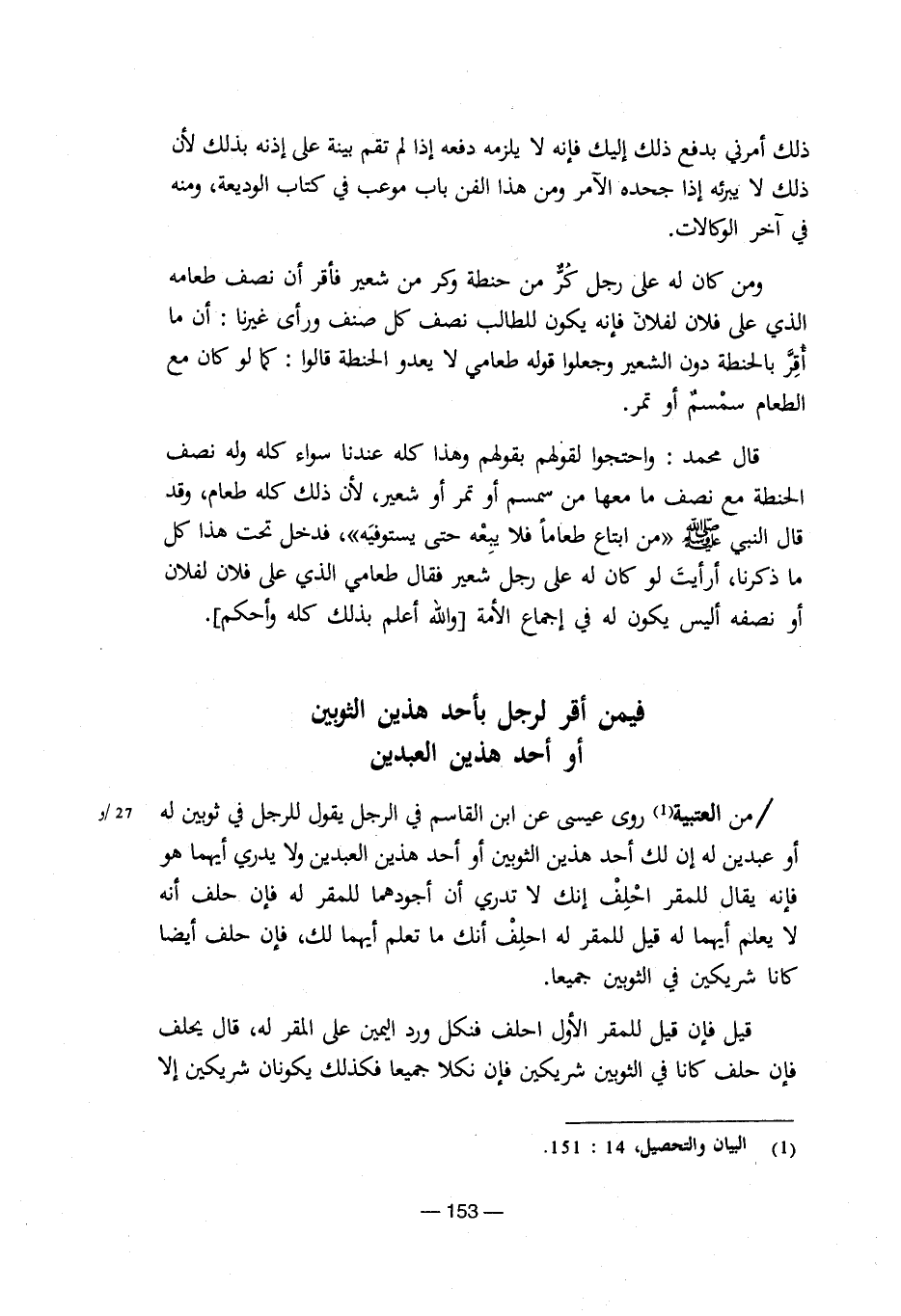(¬1) البيان والتحصيل، 14: 151.