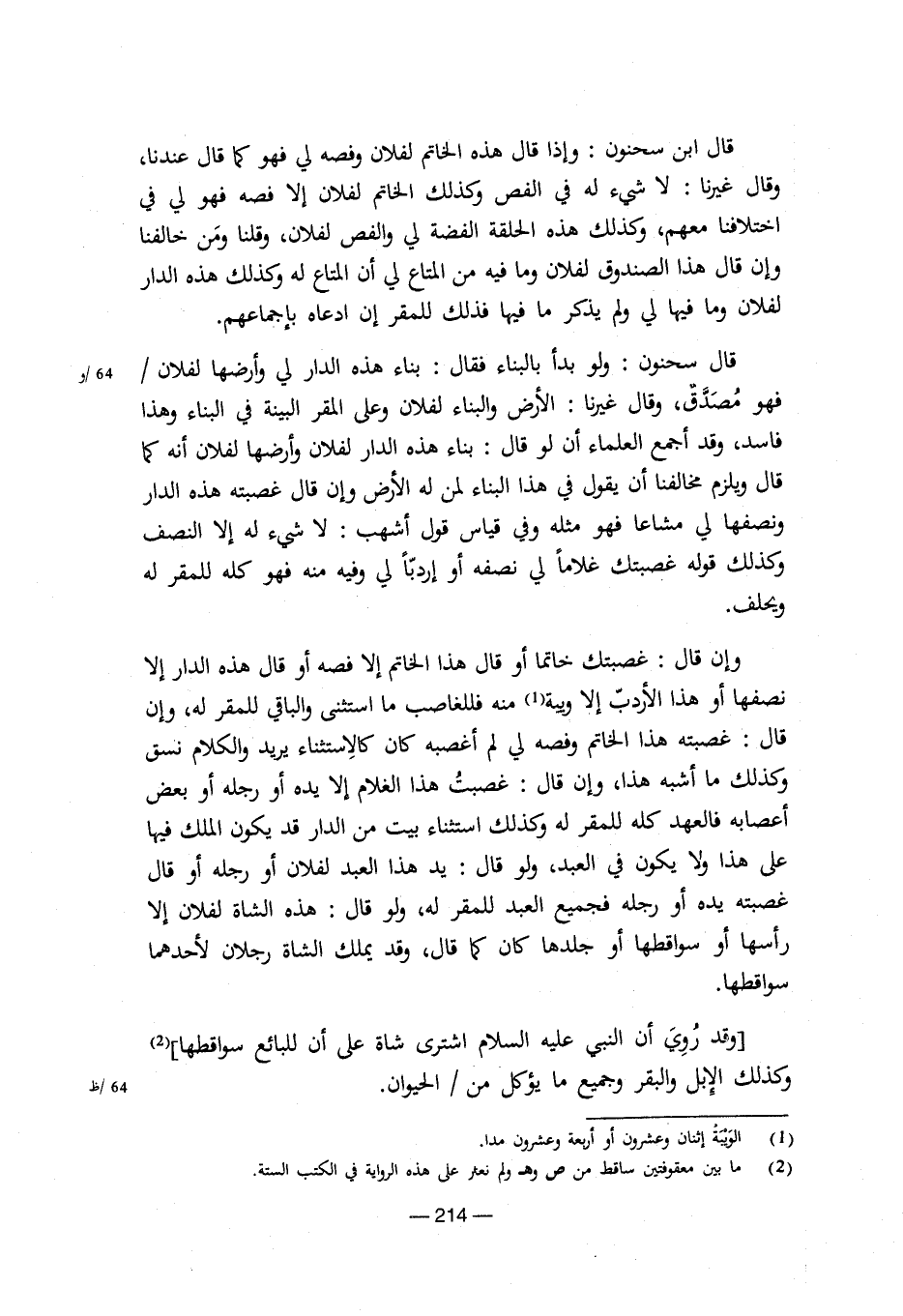 (وقد روى ان النبى علية السلام اشترى شاة على أن للبائع سواقطها) (¬2) وكذلك الإبل والبقر وجميع ما يؤكل من / الحيوان.