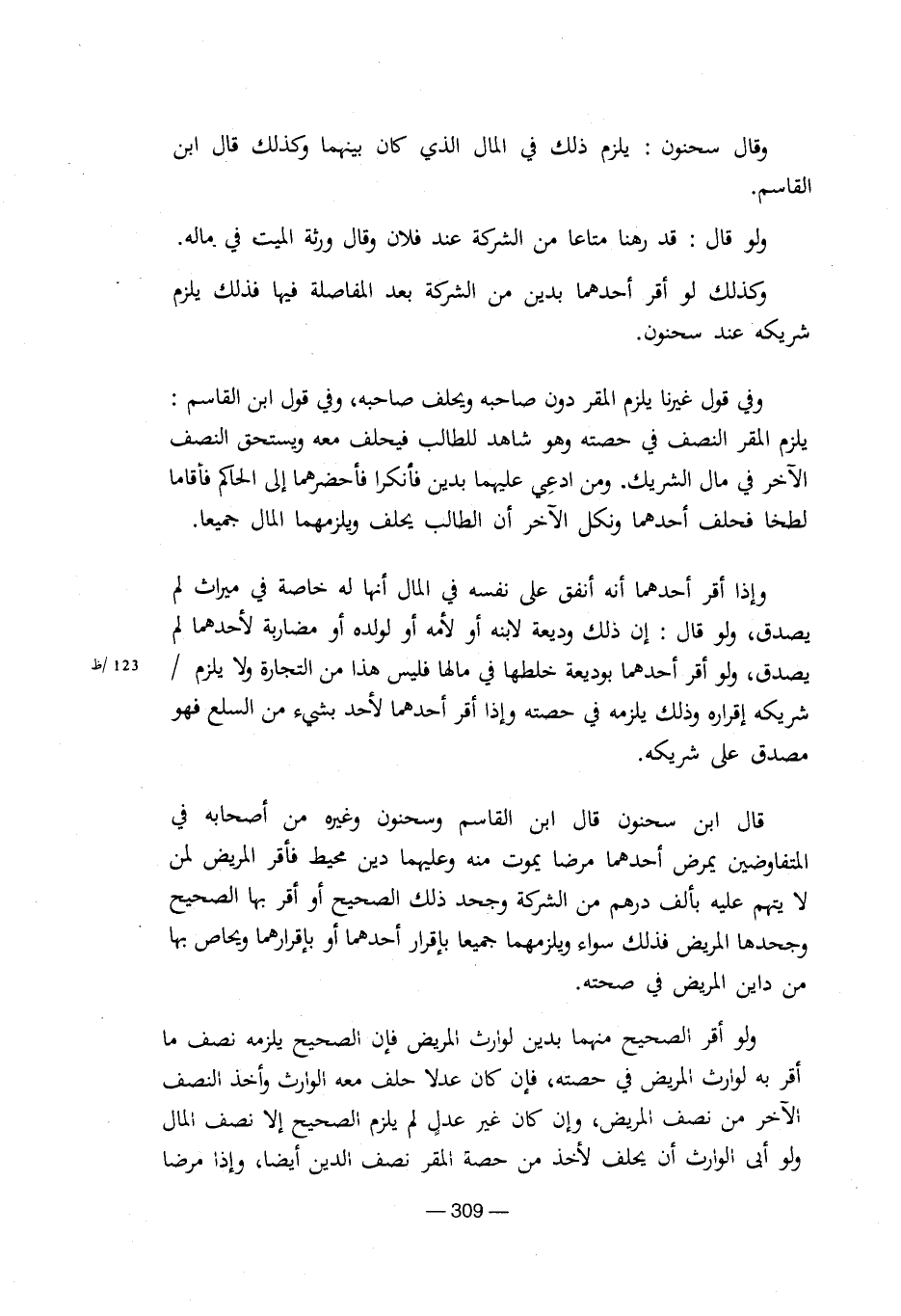 وقال ابن سحنون: يلزم ذلك في المال الذي كان بينهما وكذلك قال ابن القاسم.