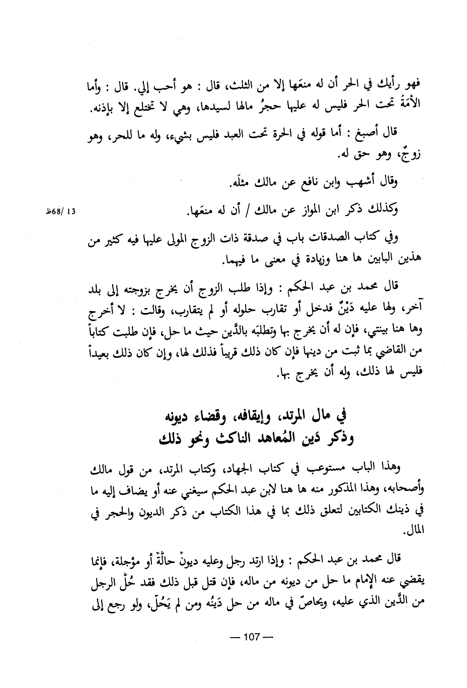 وهذا الباب مستوعب في كتاب الجهاد، وكتاب المرتد، من قول مالك وأصحابه، وهذا المذكور منه ها هنا لابن عبد الحكم سيغني عنه أو يضاف إليه ما في ذينك الكتابين لتعلق ذلك بما في هذا الكتاب من ذكر الديون والحجر في المال.