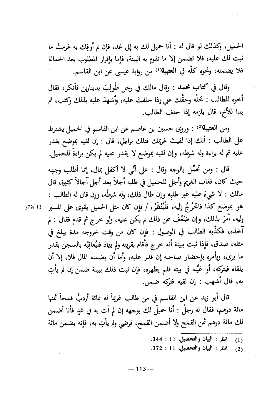 الحميل، وكذلك لو قال له: أنا حميل لك به إلى غد، فإن لم أوفك به غرمت ما ثبت لك عليه، فلا تضمن إلا ما تقوم به البينة، فإما بإقرار المطلوب بعد الحمالة فلا يضمنه، ونحوه كله في العتبية من رواية عيسى عن ابن القاسم.