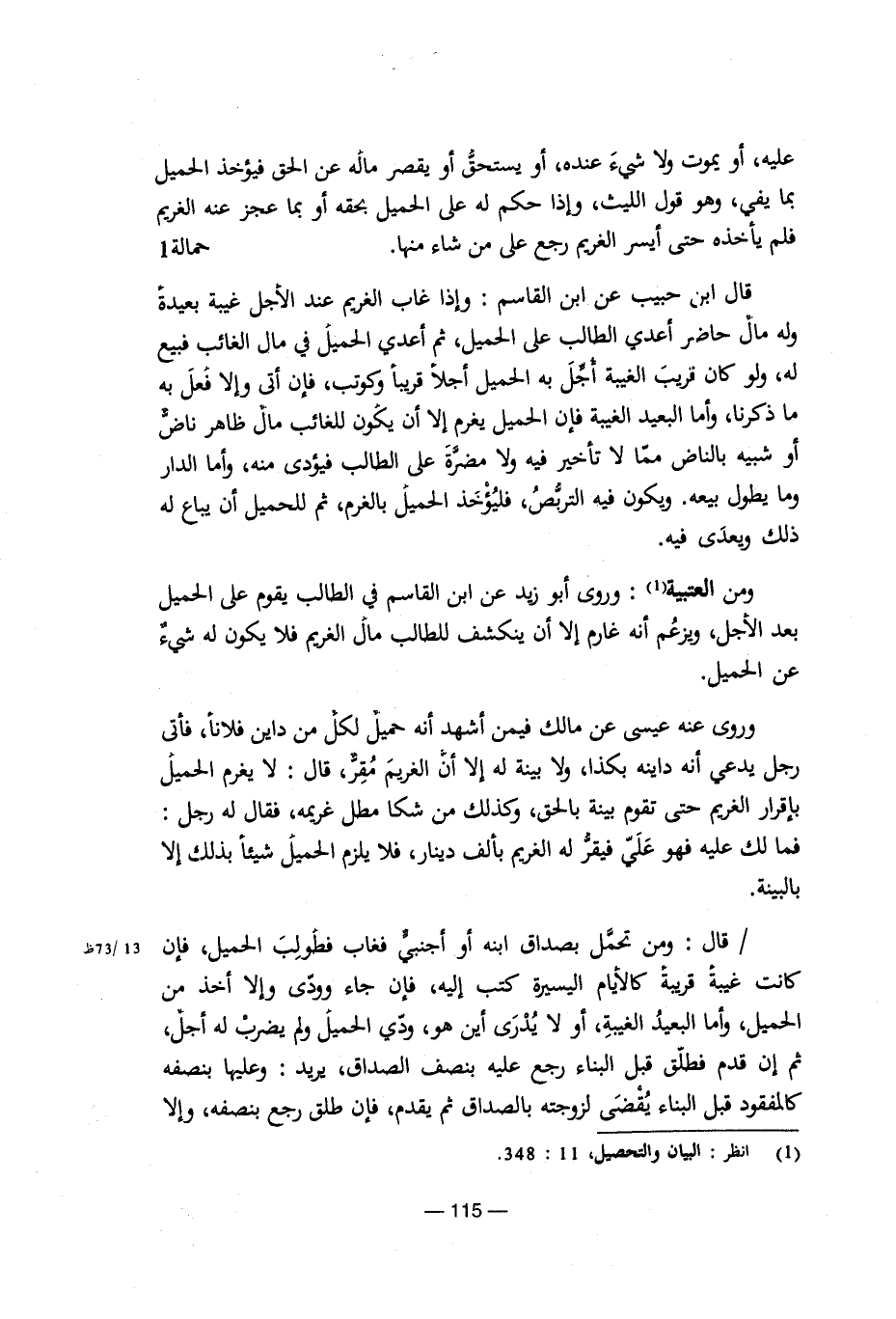 ومن العتبية: وروى أبو زيد عن ابن القاسم في الطالب يقوم على الحميل بعد الأجل، ويزعم أنه غارم إلا أن ينكشف للطالب مال الغريم فلا يكون له شيء عن الحميل.