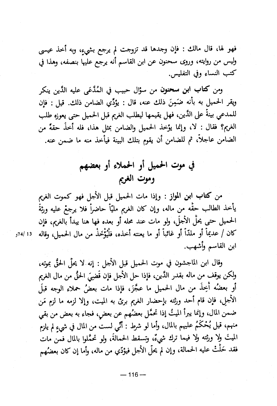 في موت الحميل أو الحملاء أو بعضهم وموت الغريم