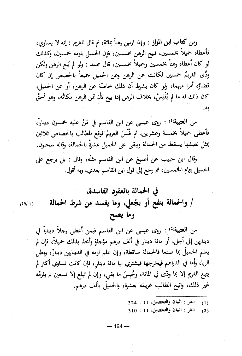 في الحمالة بالعقود الفاسدة،/والحمالة بنفع أو بجعل، وما يفسد من شرط الحمالة وما يصح